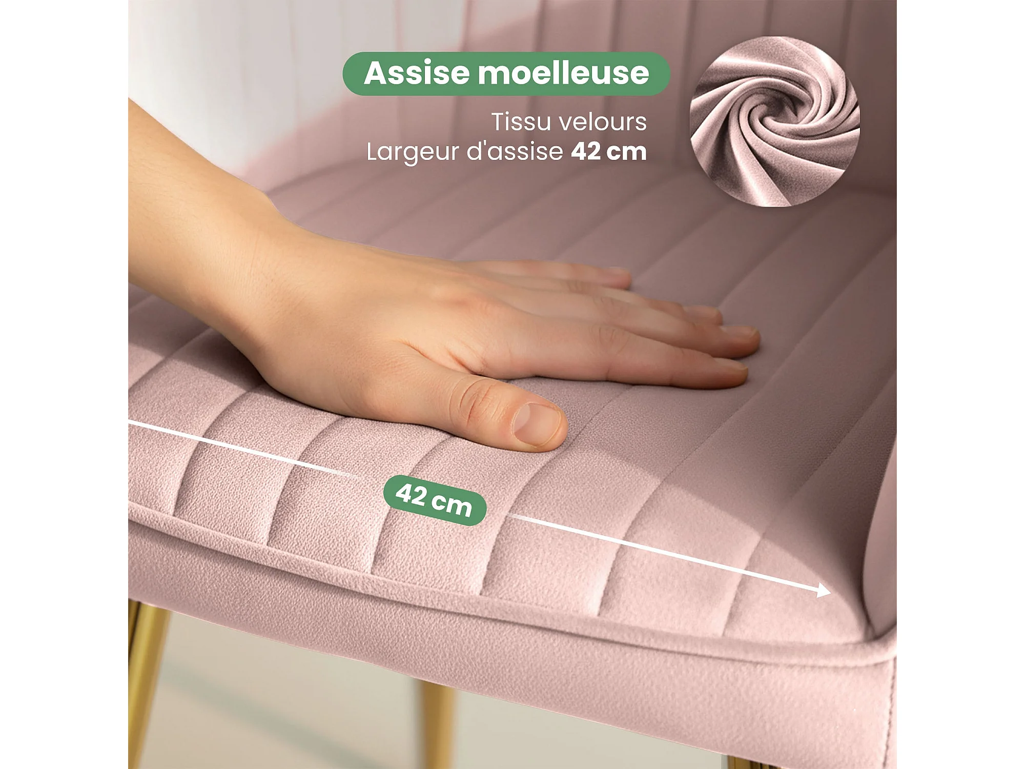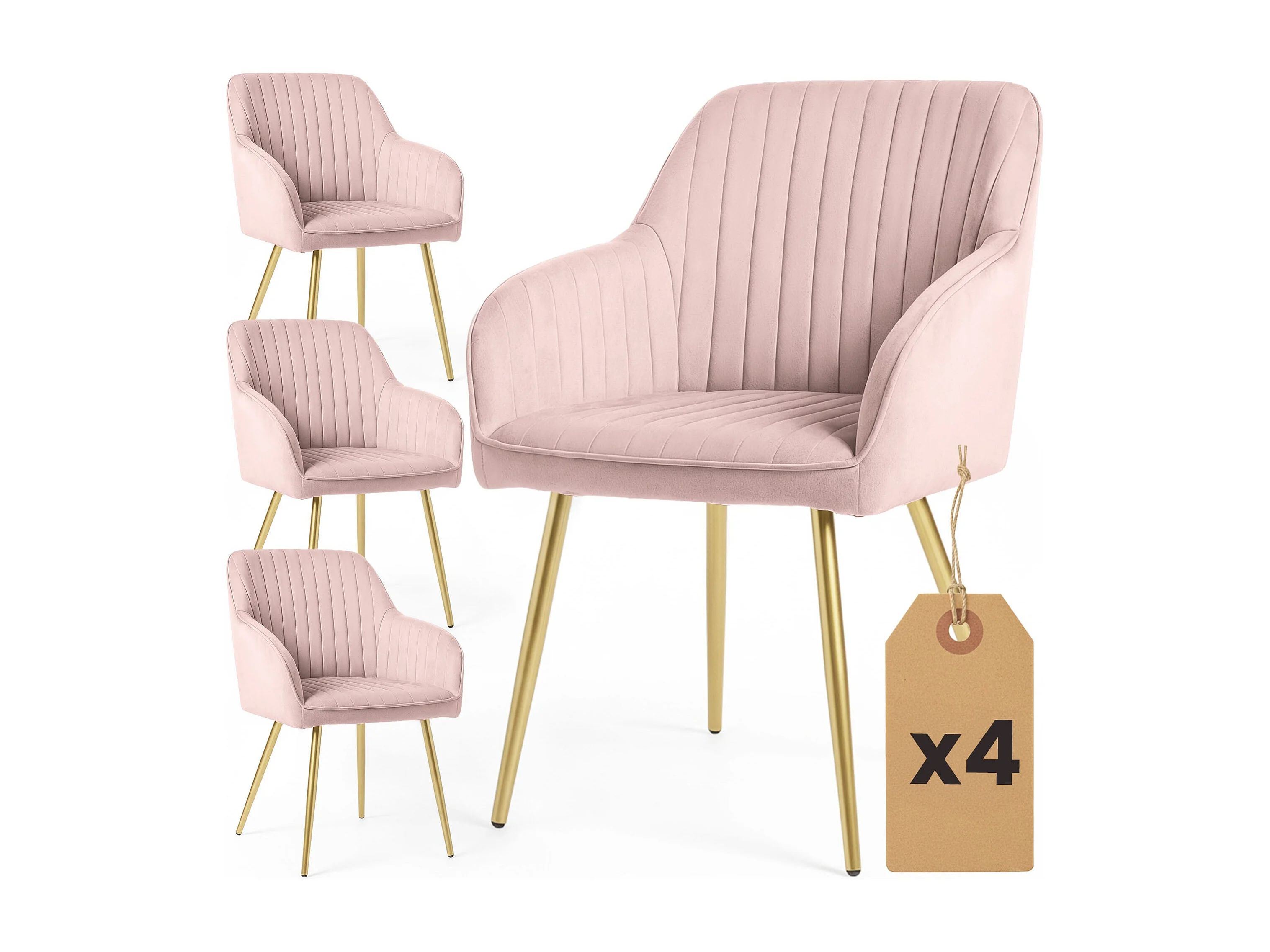 Set di 4 Sedie in velluto con cuciture verticali FLORENCE Rosa Cipria gambe oro