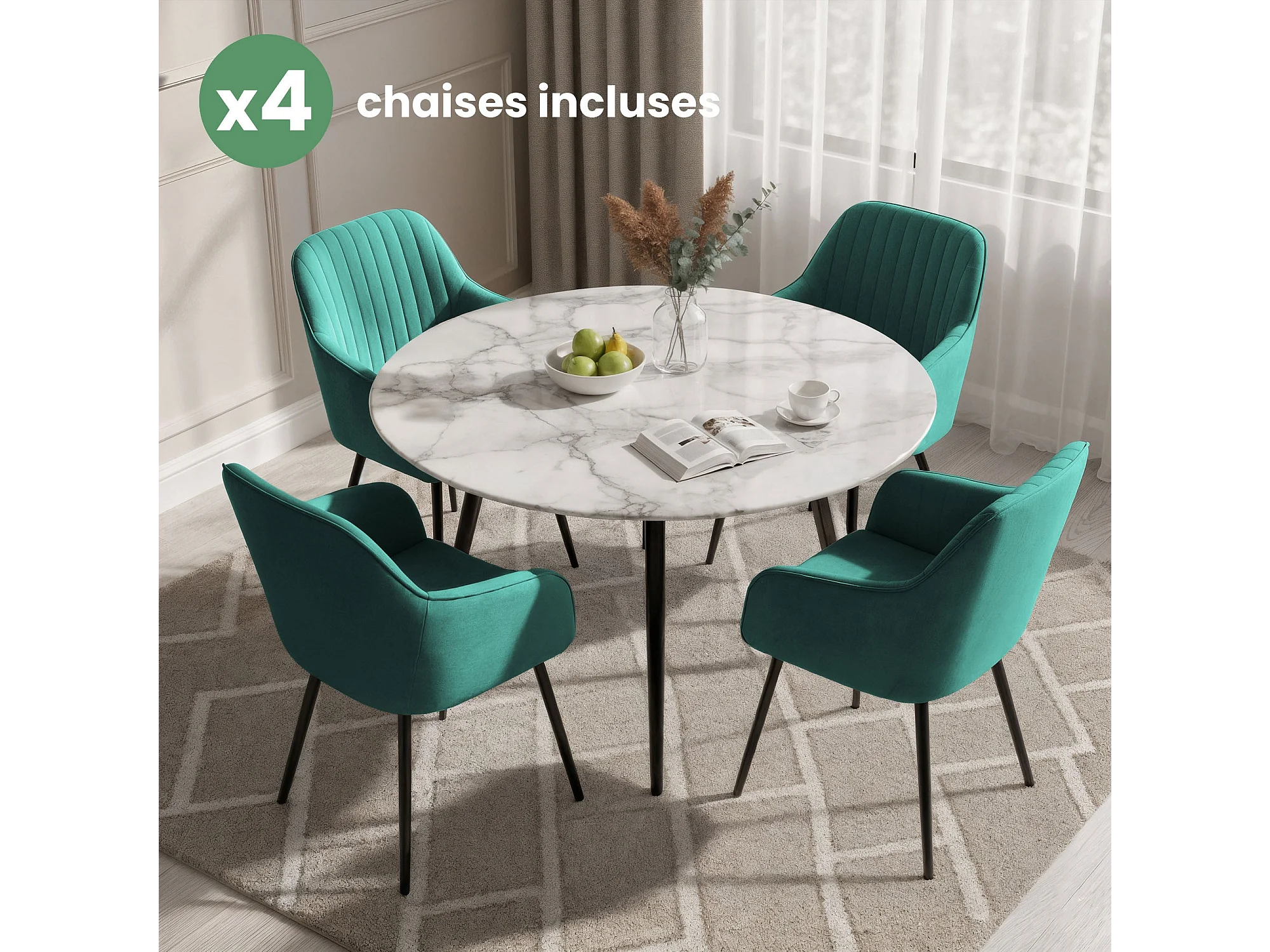 Set di 4 Sedie in velluto con cuciture verticali FLORENCE Verde Bottiglia gambe nere