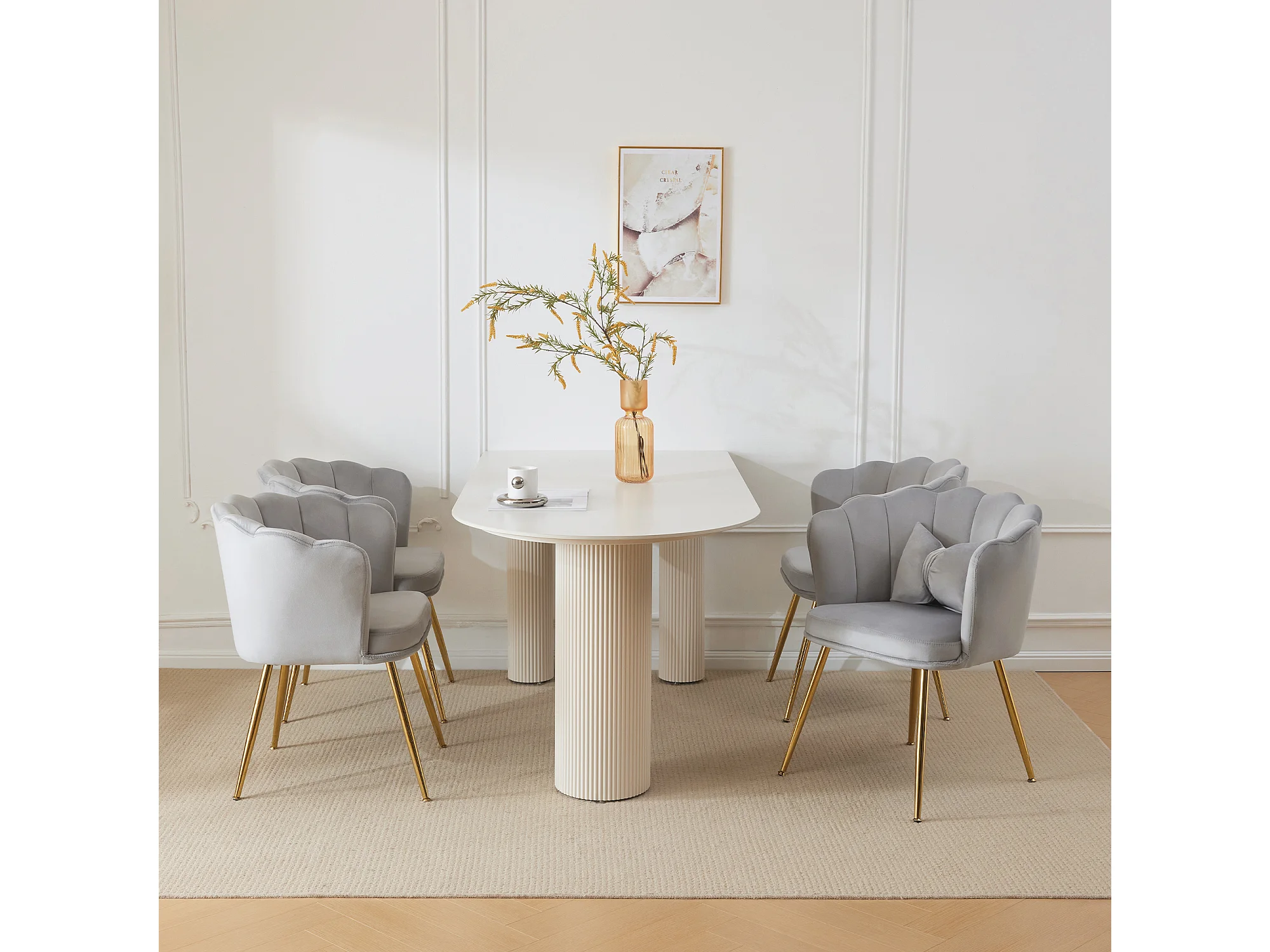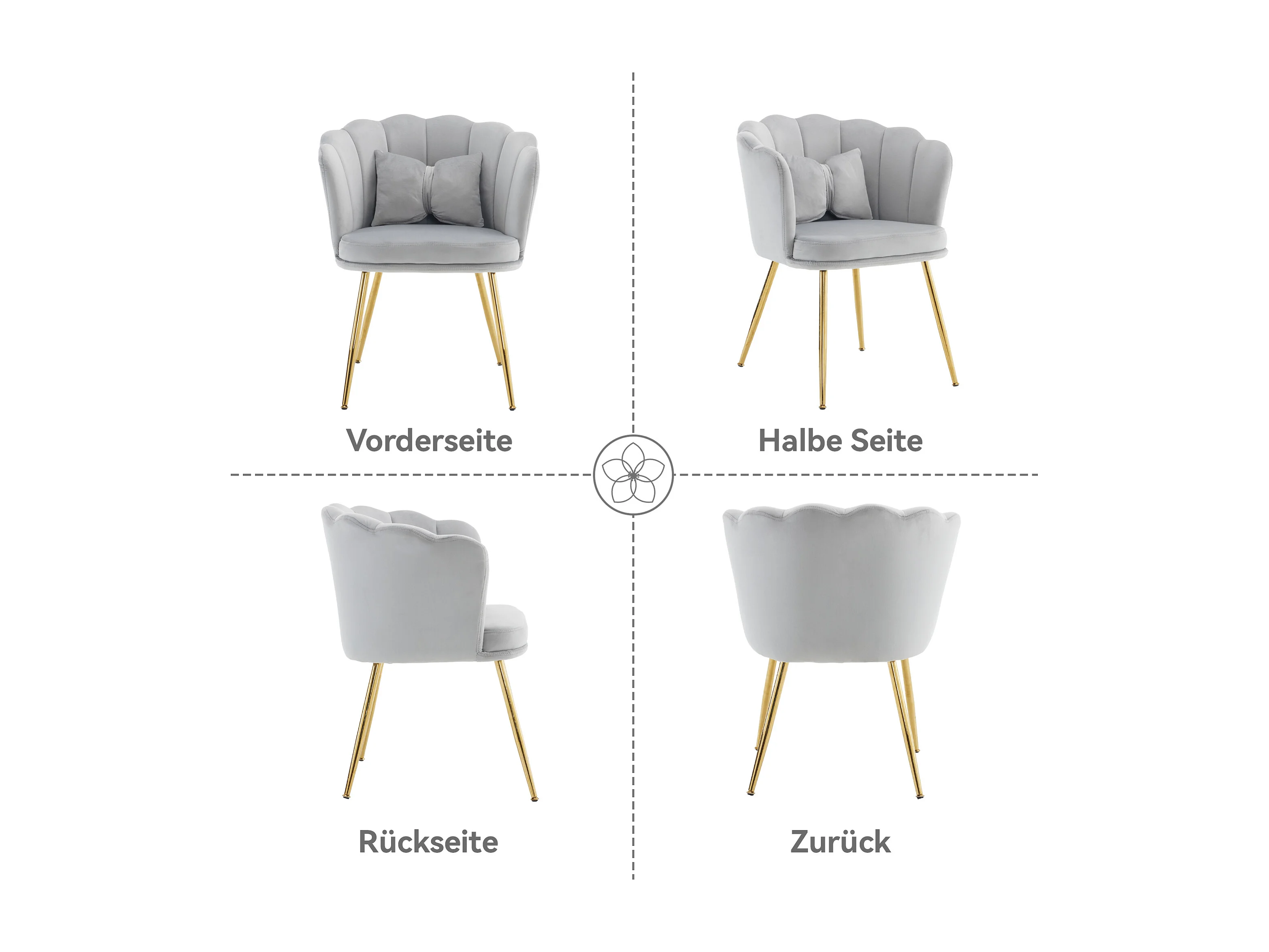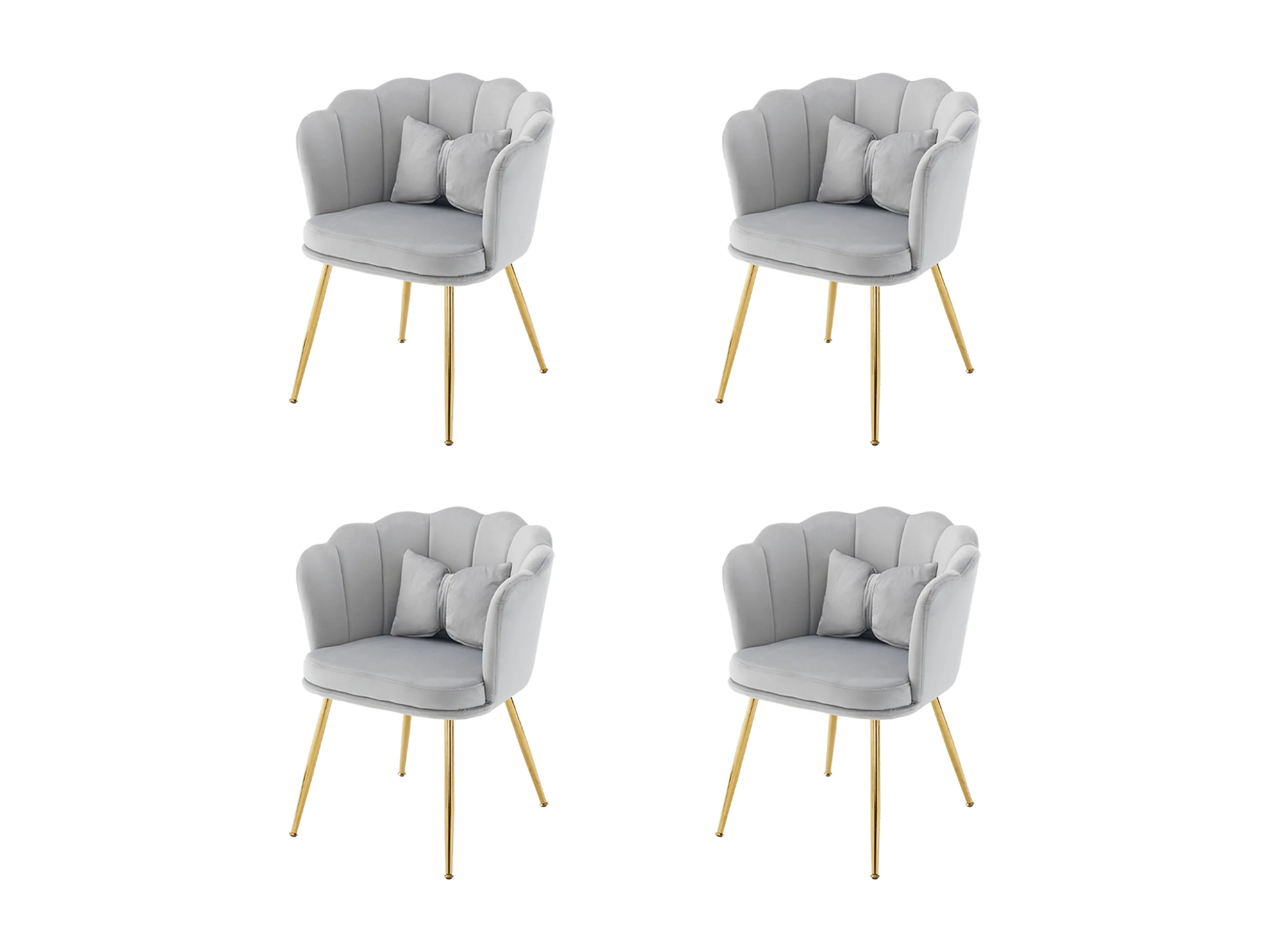 Set di 4 sedie in velluto con supporto lombare - Gambe in metallo dorato - Grigio