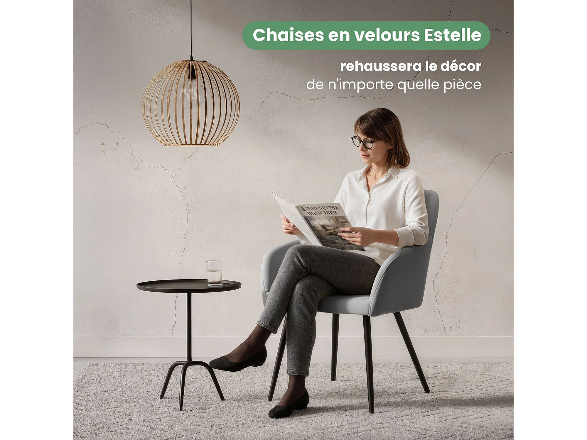 Set di 4 Sedie in velluto liscio ESTELLE Grigio gambe nere