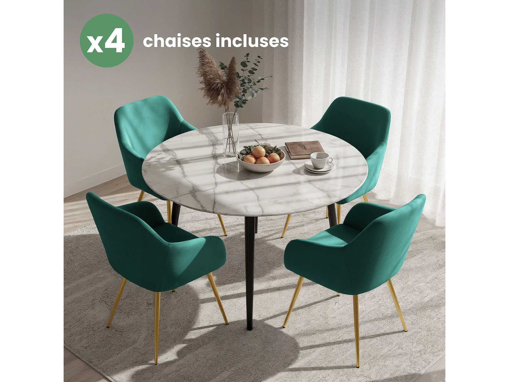 Set di 4 Sedie in velluto liscio ESTELLE Verde Bottiglia gambe oro