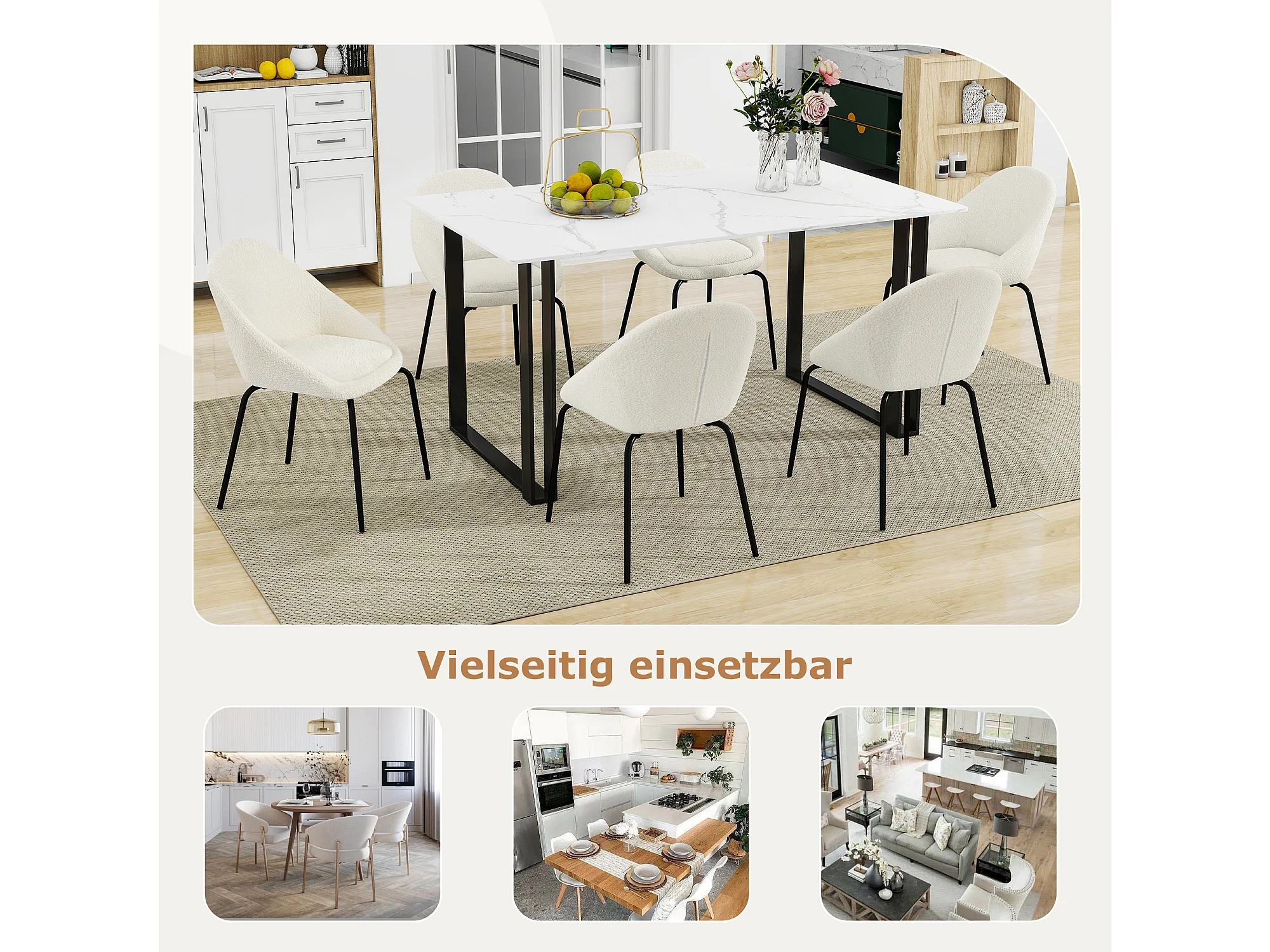 Tavolo da pranzo per 8 persone in MDF e Acciaio inossidabile Effetto Marmo Bianco e Nero - EVAELA