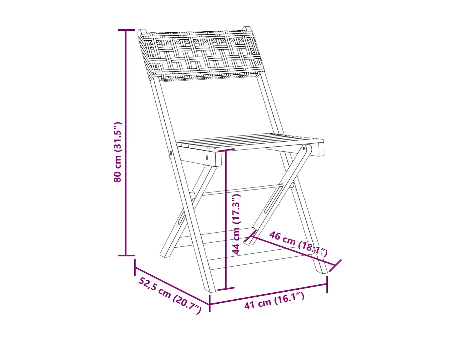 Set di 4 sedie pieghevoli da giardino in polyrattan grigio e legno massello