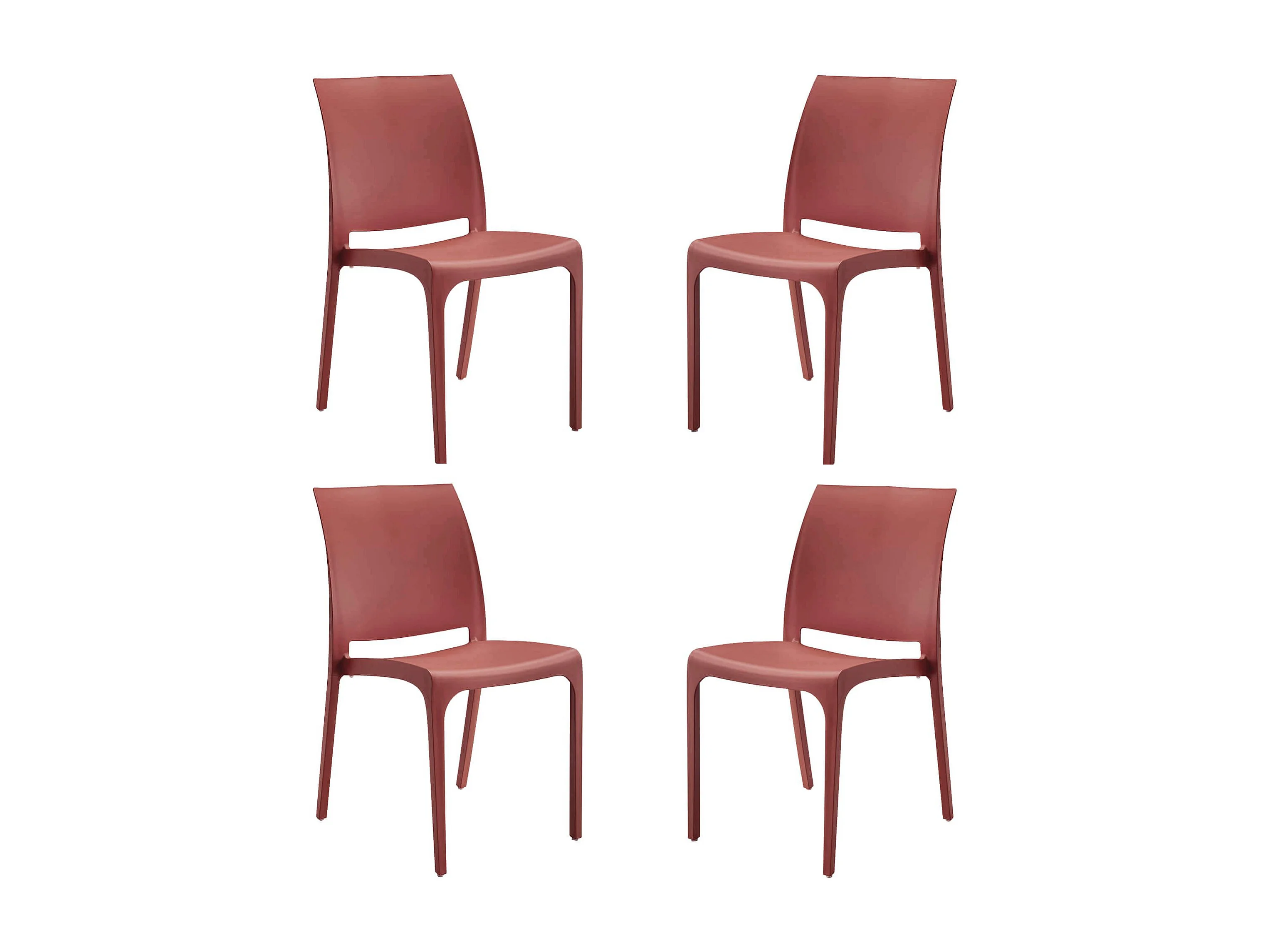 MilaniHome.it - set di 4 Poltrone in plastica per esterno giardino interno sala da pranzo colorata polipropilenedi coloreRosso corallo