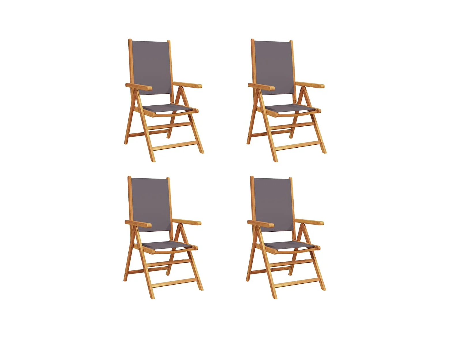 Set di 4 sedie reclinabili da giardino in tessuto e legno massello