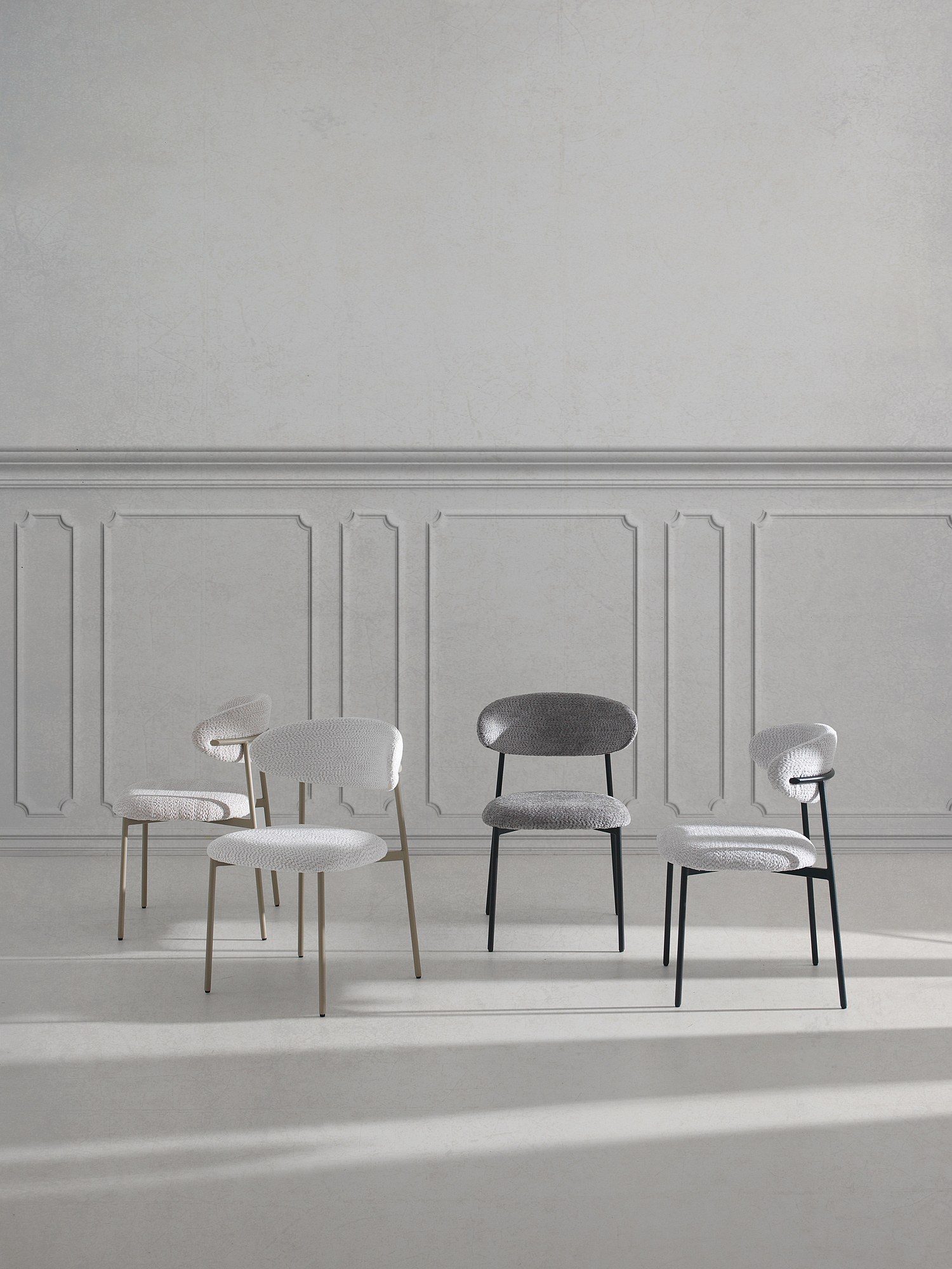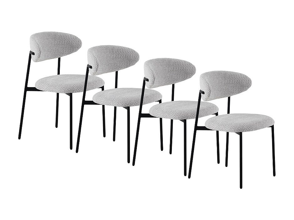 Set di 4 sedie rivestite in ciniglia color grigio chiaro
