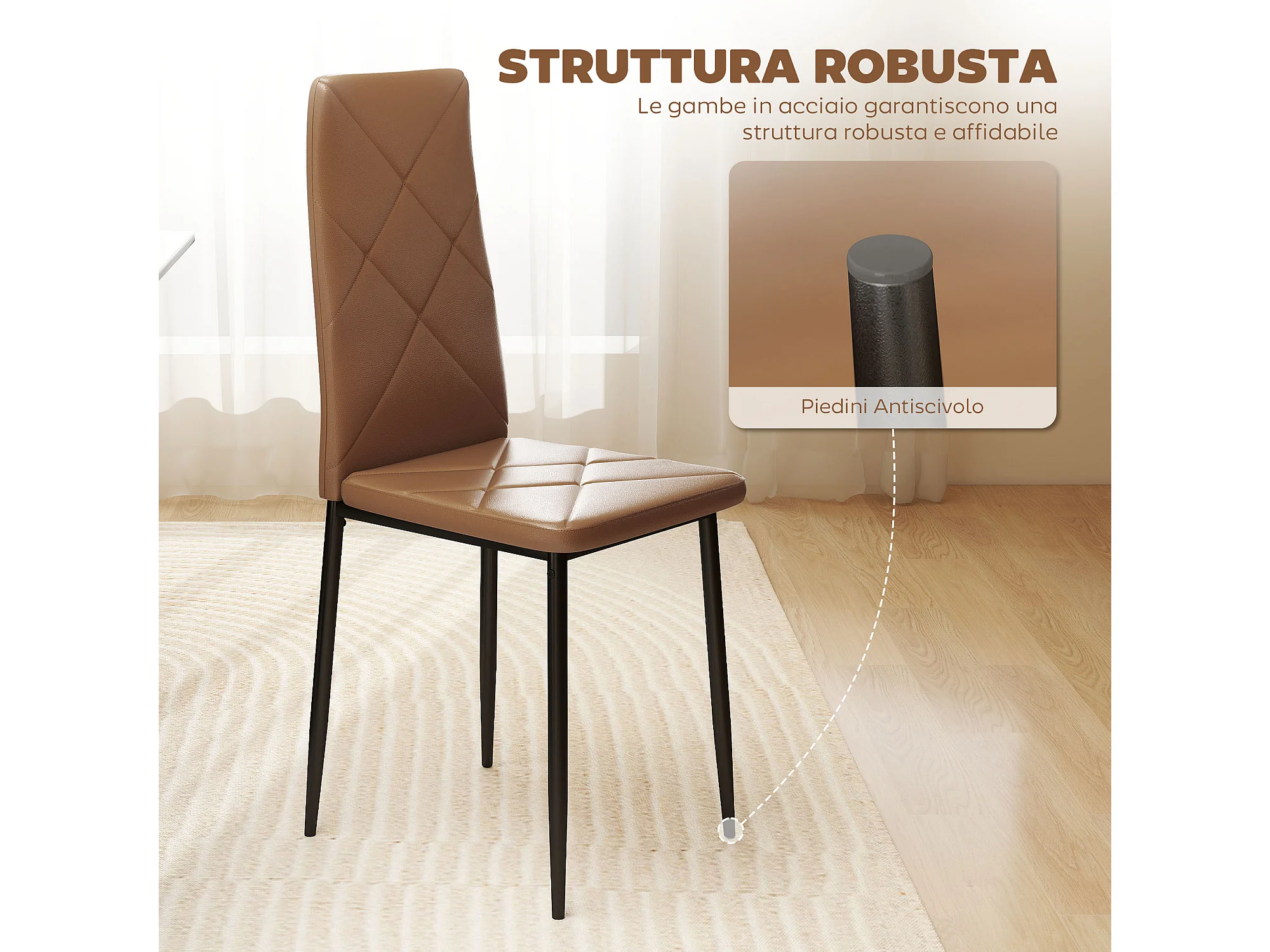 Set di 4 sedie moderne marroni "Siviglia" struttura in metallo verniciato seduta in ecopelle effetto soft touch
