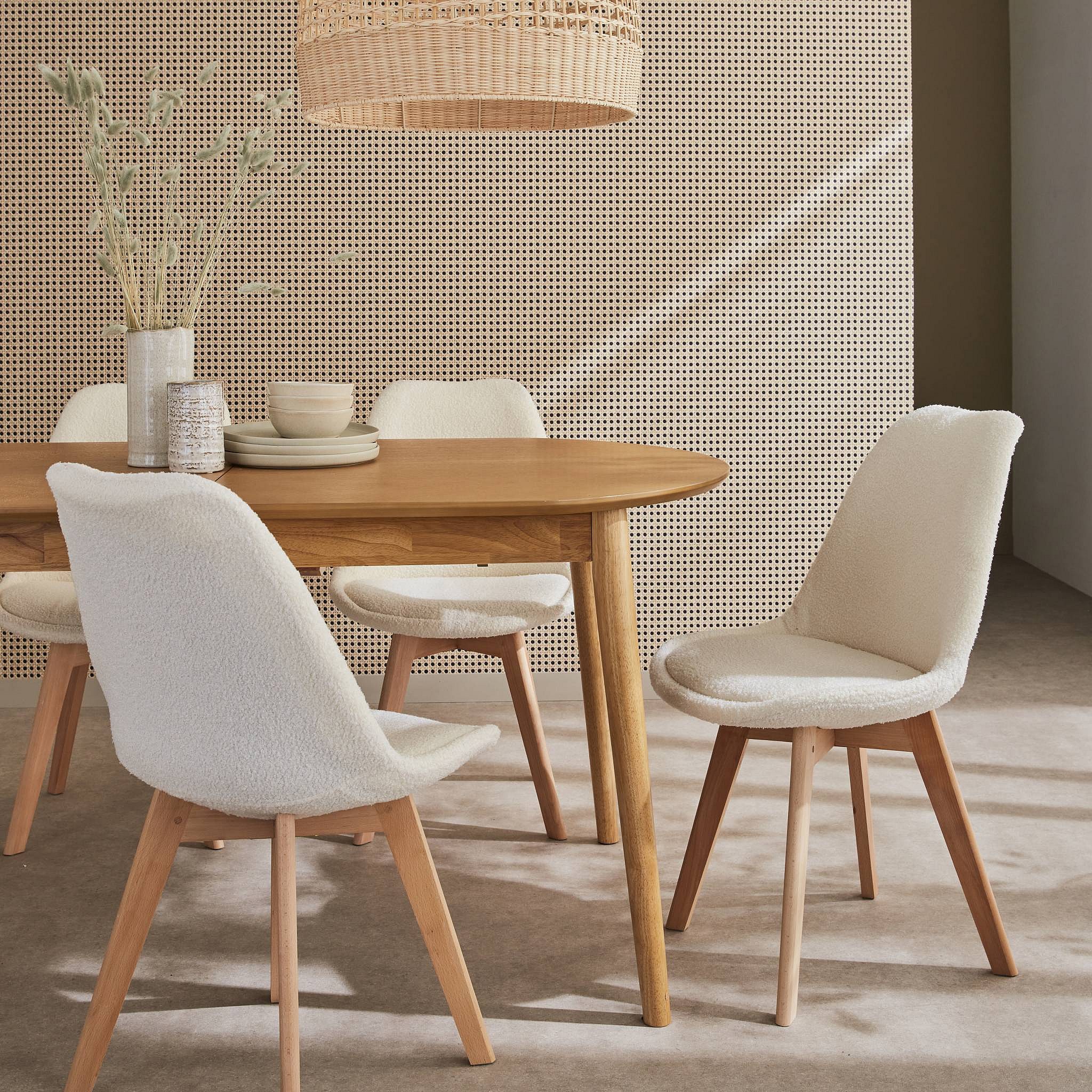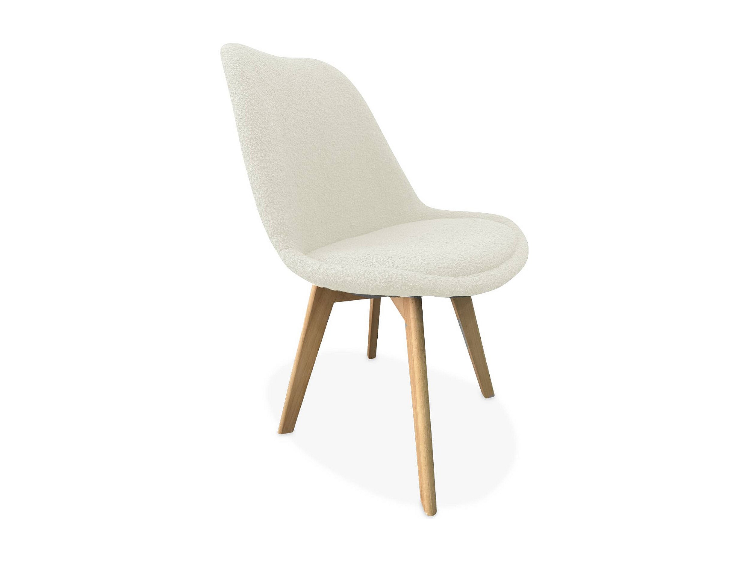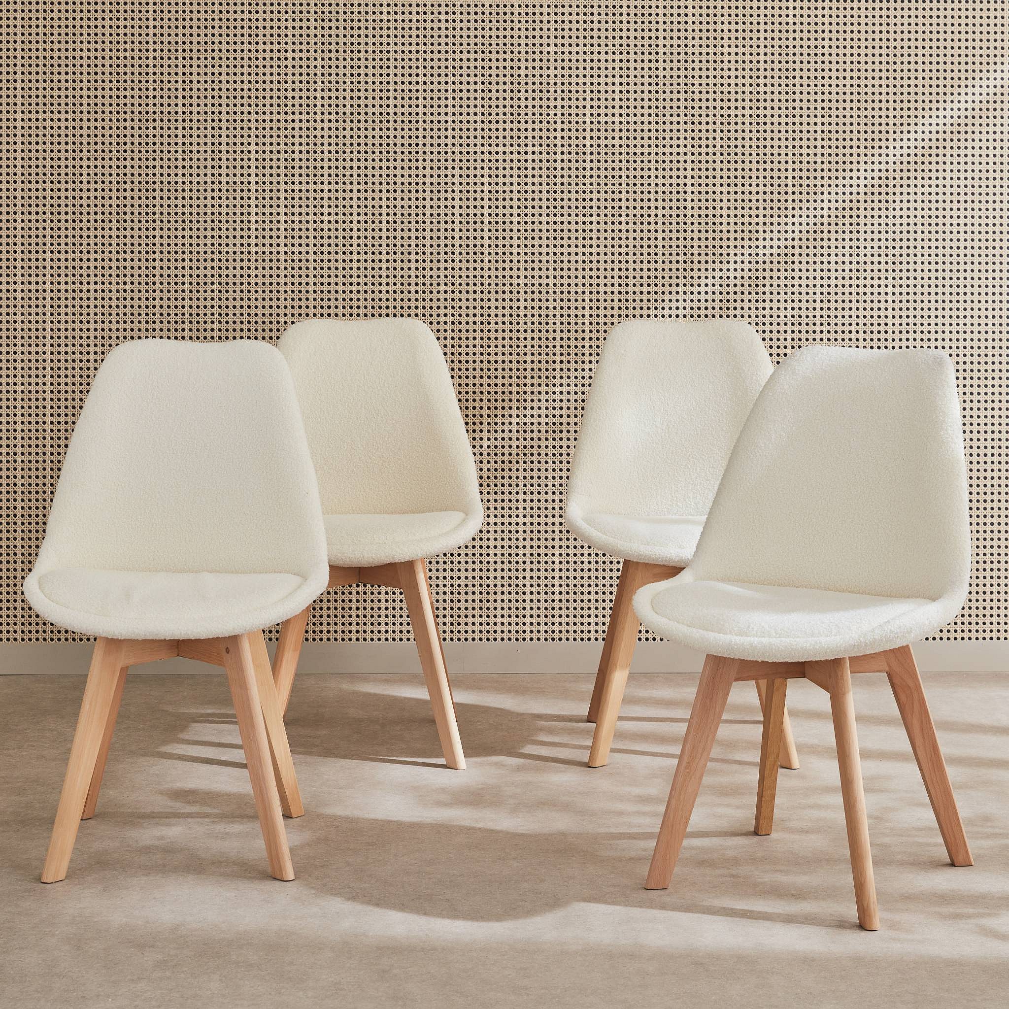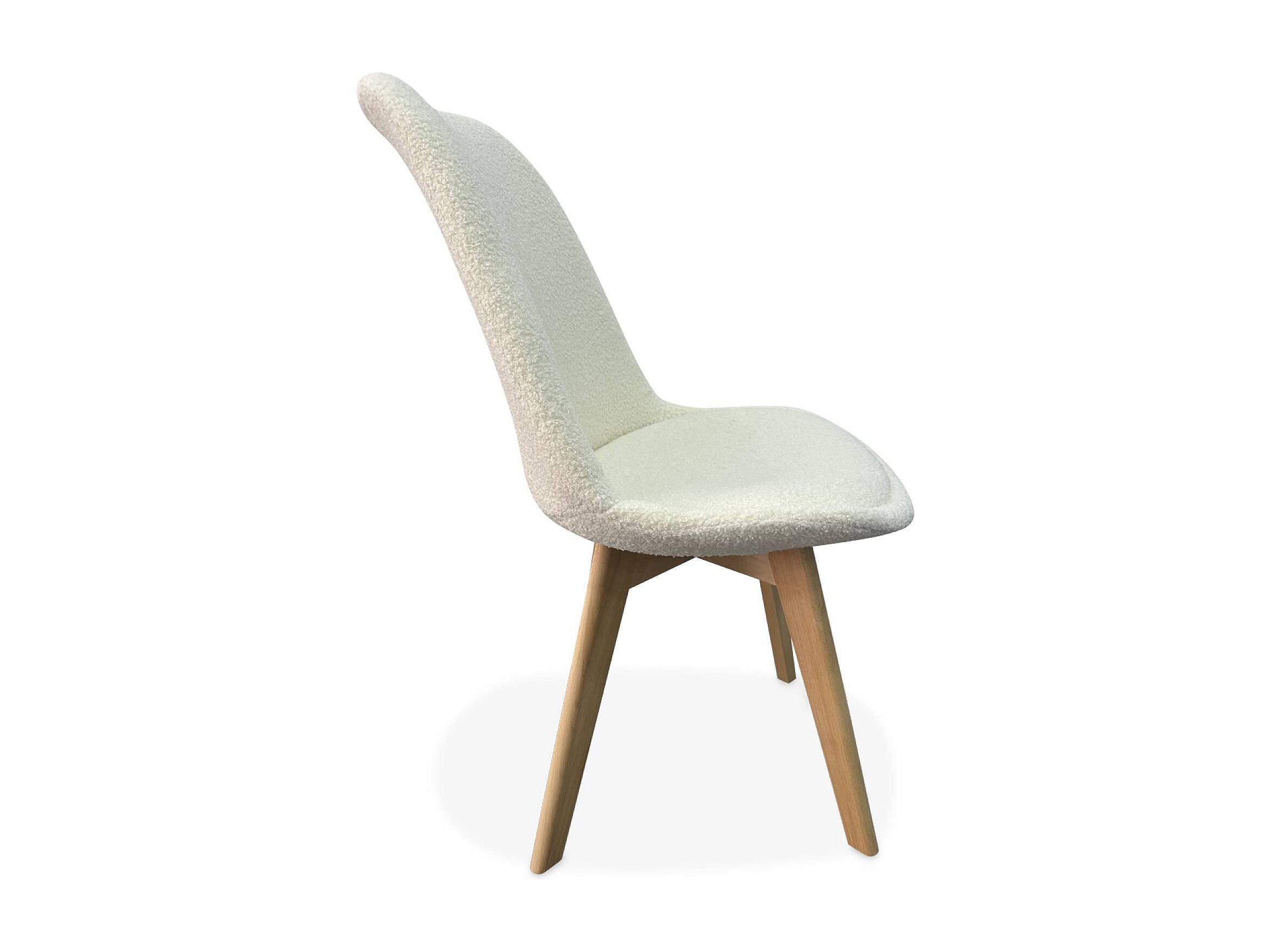 Set di 4 sedie scandinave bouclé, gambe in legno, bianco