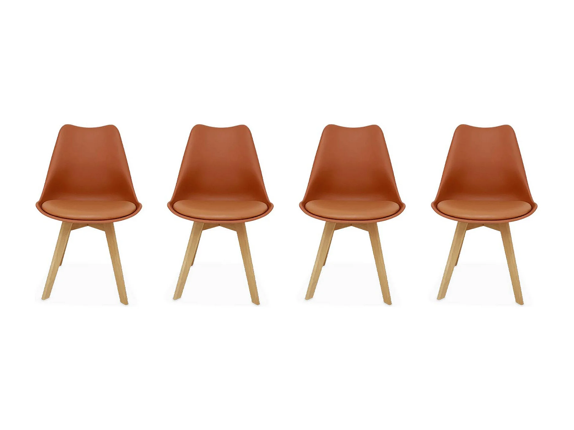 Set 4 sedie scandinave imbottite, gambe in legno , terracotta