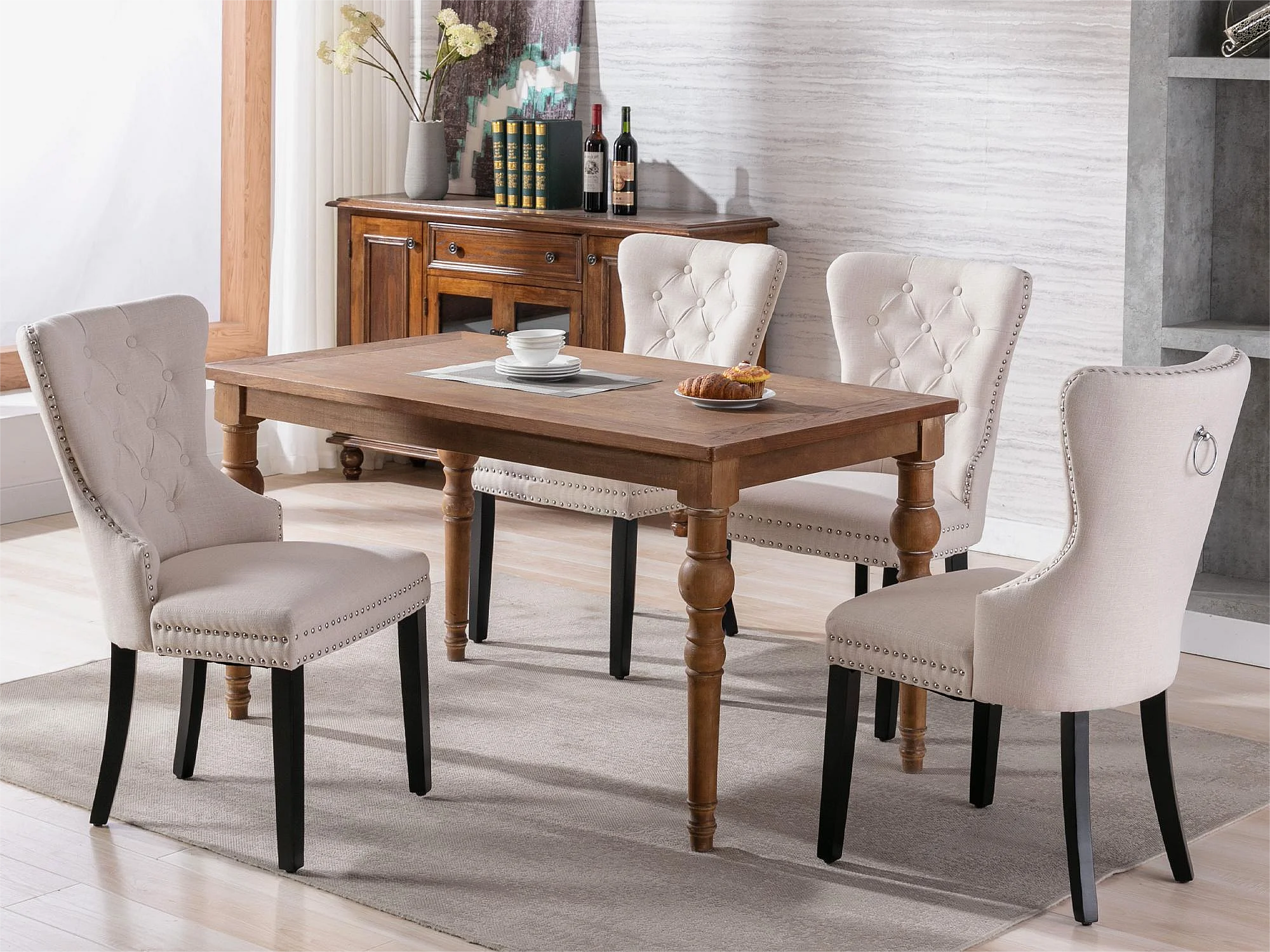 Set di 4 sedie - tessuto e gambe in legno massello - beige