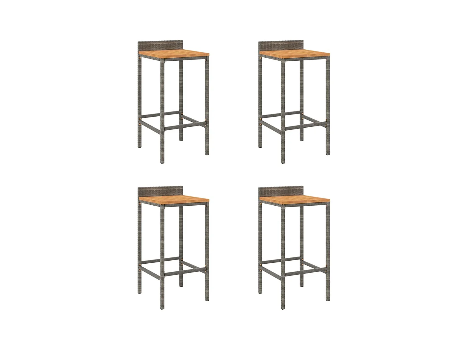 Set di 4 sgabelli da bar grigi in resina intrecciata e legno di acacia