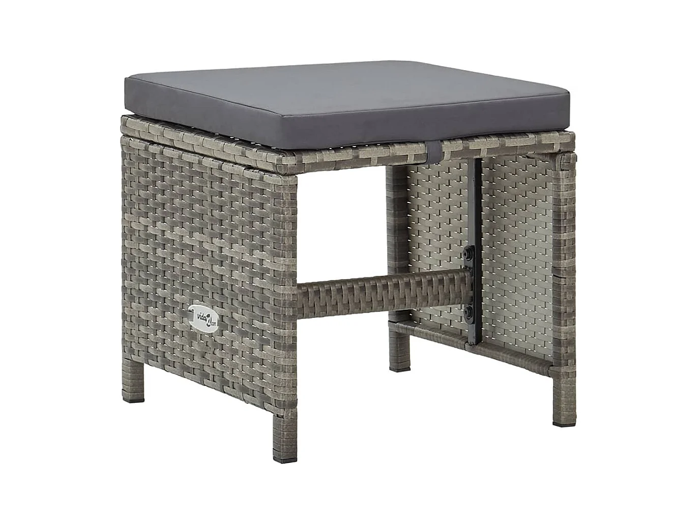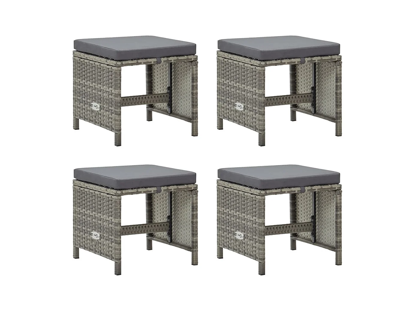 Set di 4 sgabelli da giardino con cuscini in resina intrecciata grigia