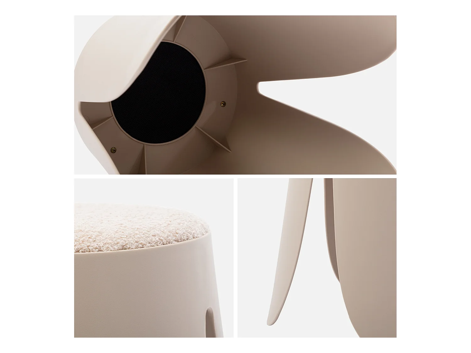 Sgabello e poggiapiedi in tessuto a forma di ciottolo, beige