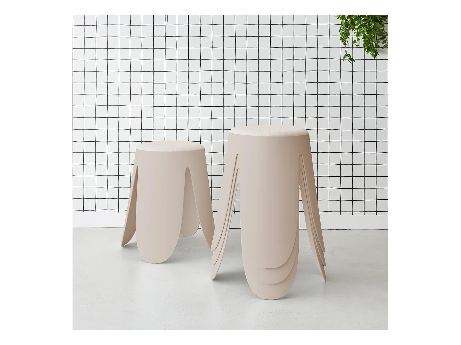 Set di 2 sgabelli impilabili in materiale bouclé, beige