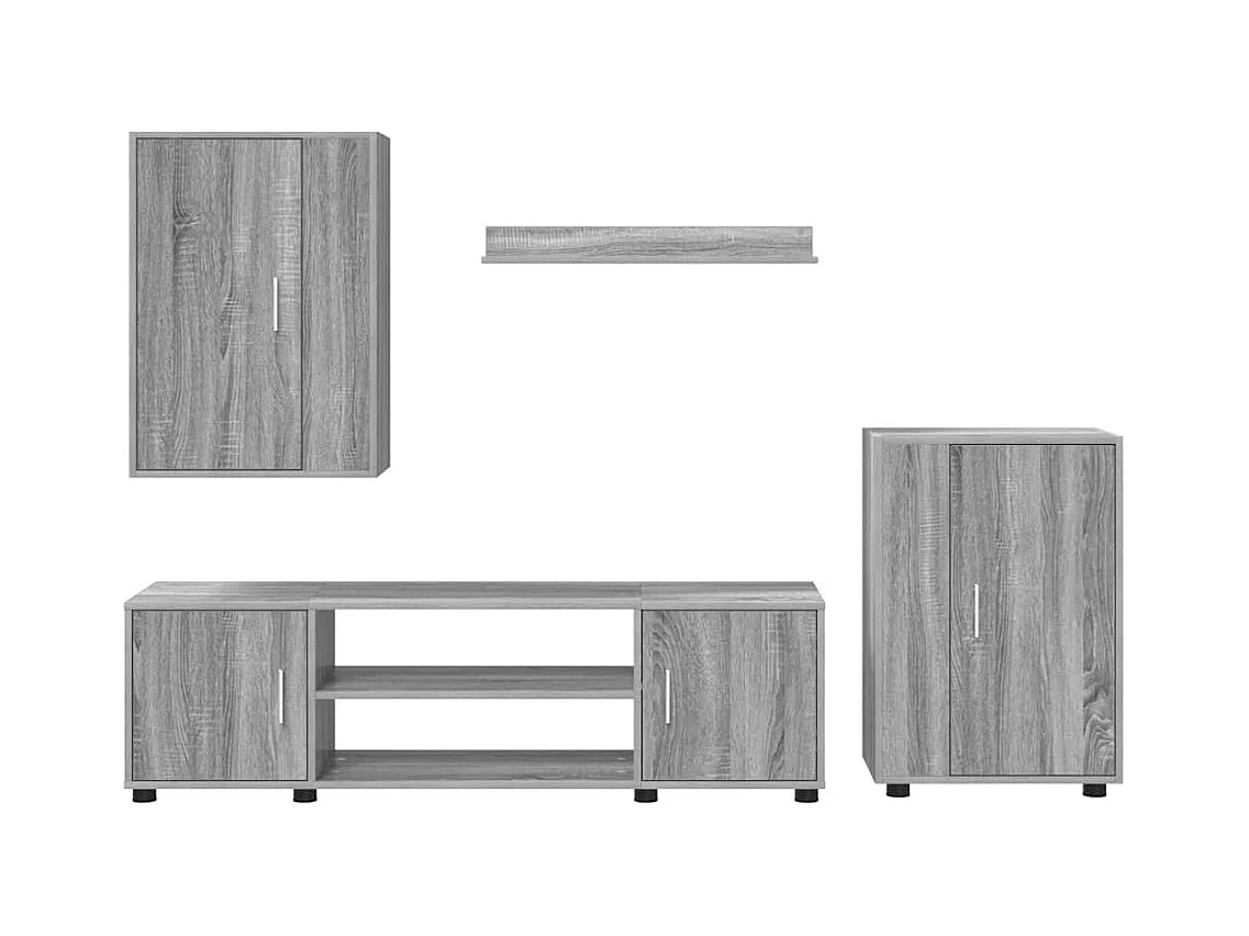 Set di 4 mobili porta TV da parete, 4 pezzi, grigio cemento