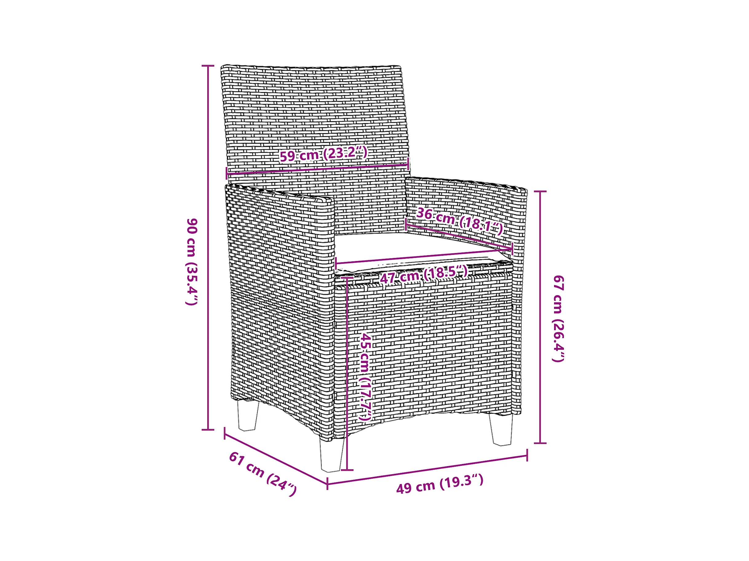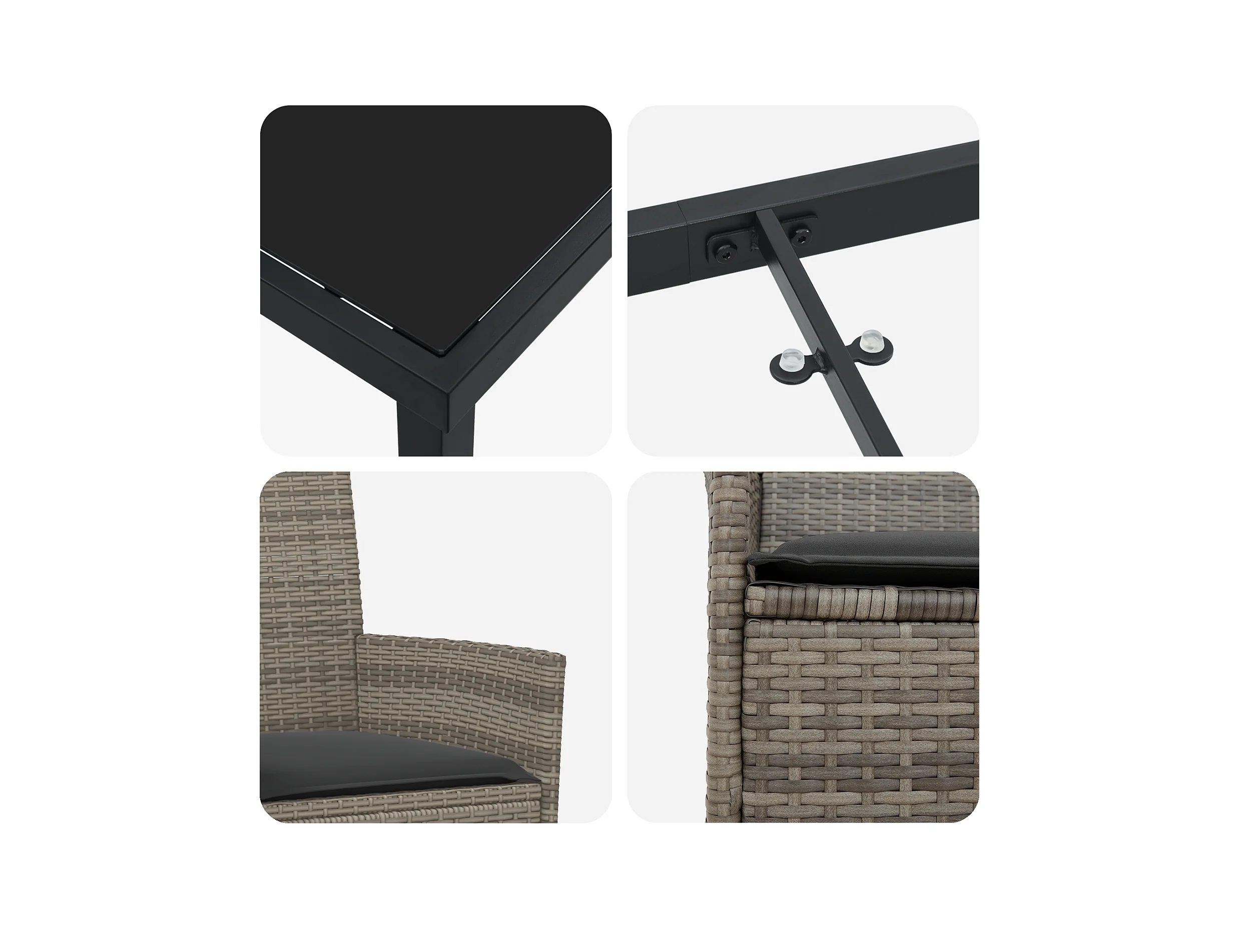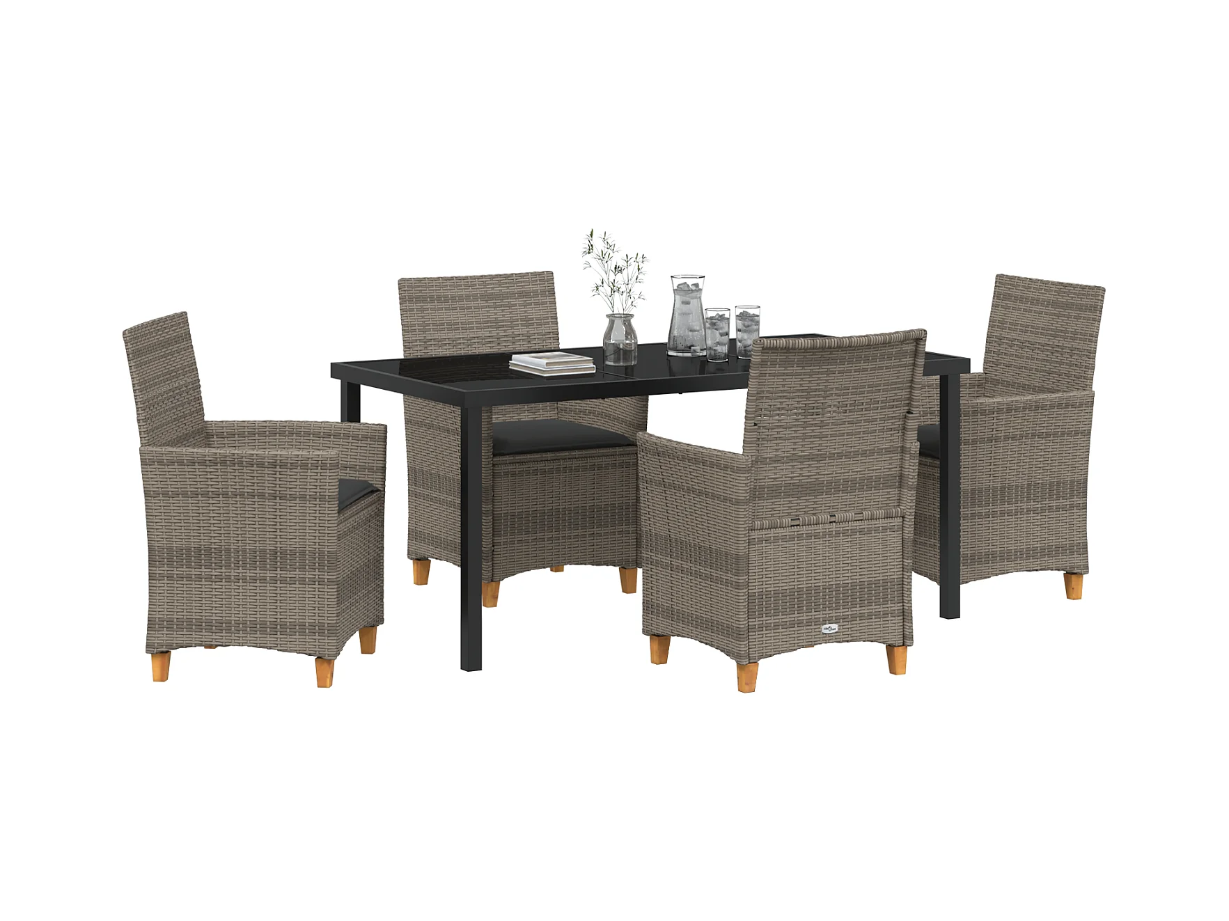 Set di 5 sedie da giardino con cuscini in rattan sintetico grigio