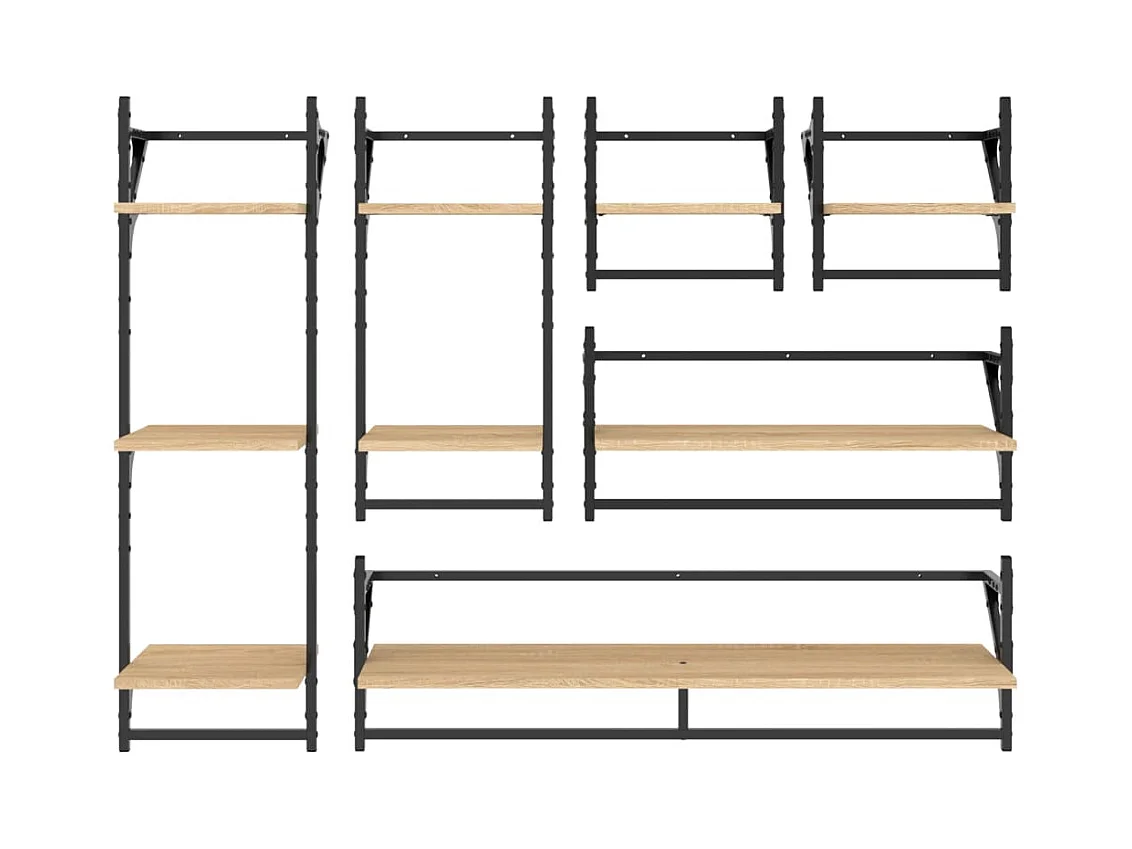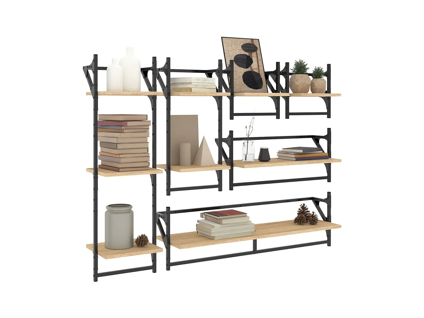 Set di 6 mensole da parete con barre, rovere Sonoma