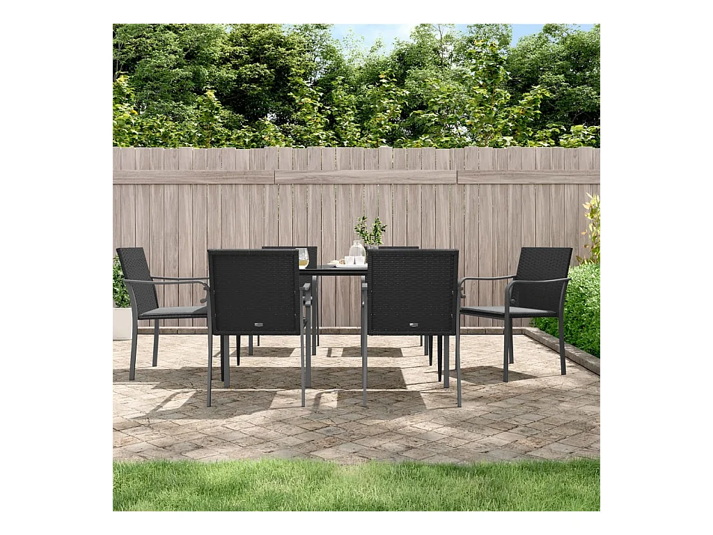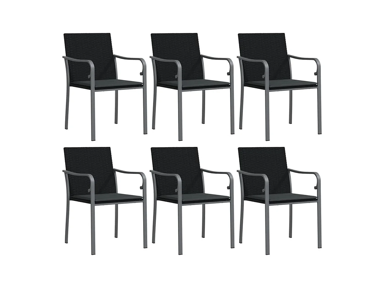 Set di 6 sedie da giardino con cuscini in rattan nero 56x59x84 cm