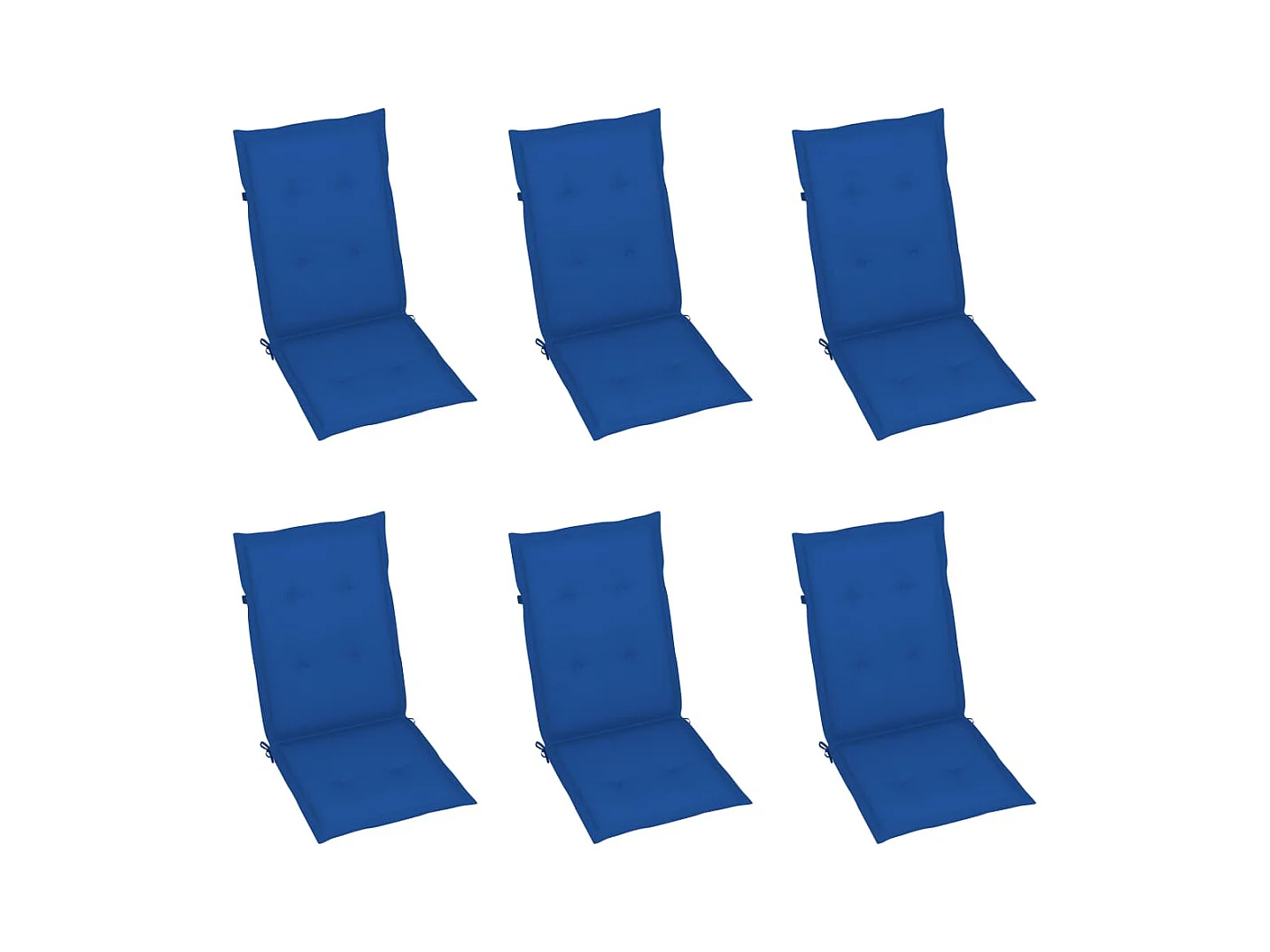 Set di 6 sedie da giardino con cuscini blu reale in legno di teak