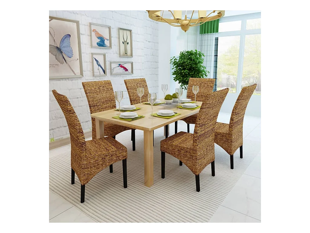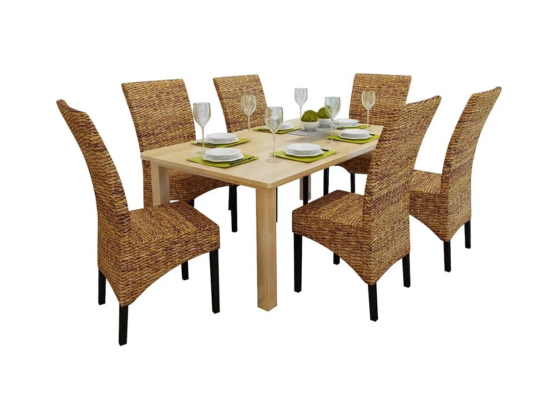 Set di 6 sedie da pranzo in legno massello di mango e abaca