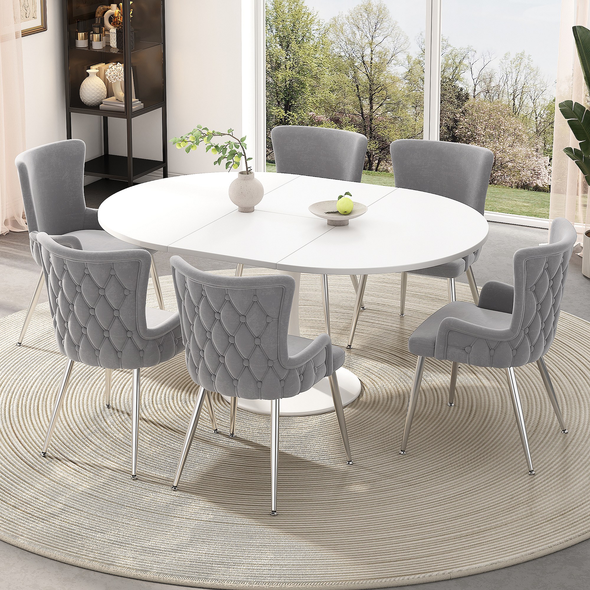 Set di 6 sedie in velluto - 82 x 57 x 54 cm - con cuscini - Sedia girevole di lusso per soggiorno e camera da letto - Gambe arcuate - Grigio