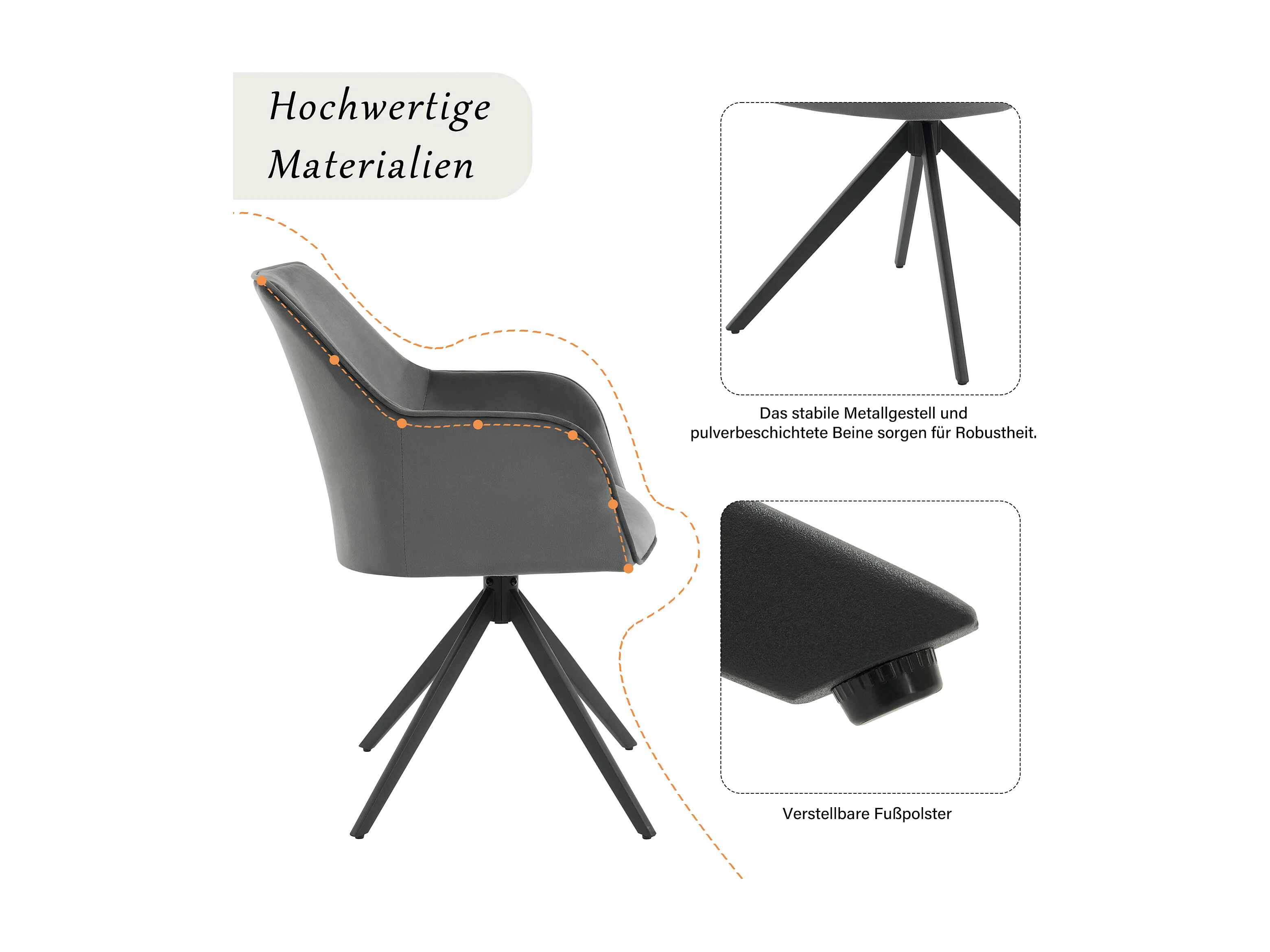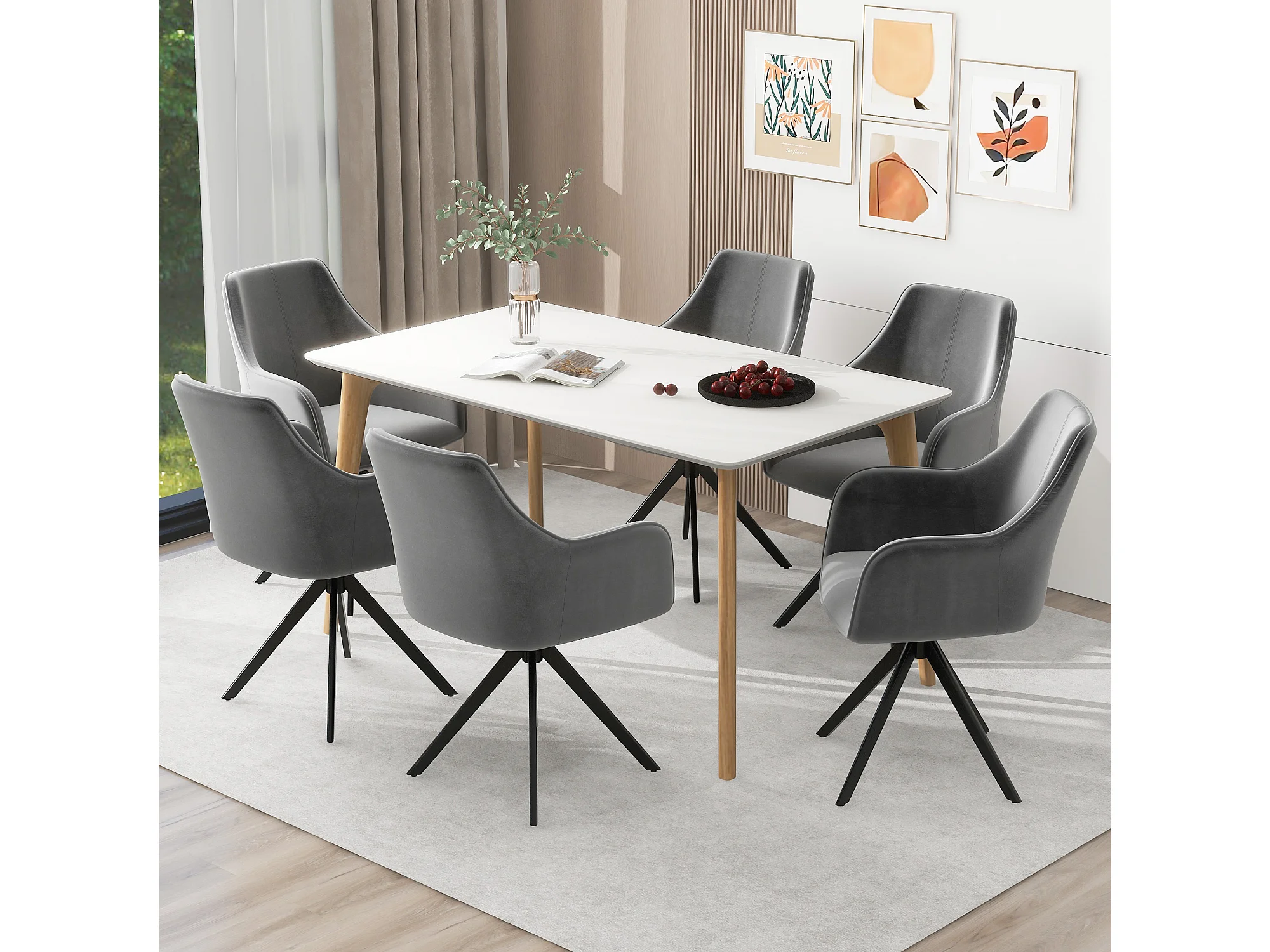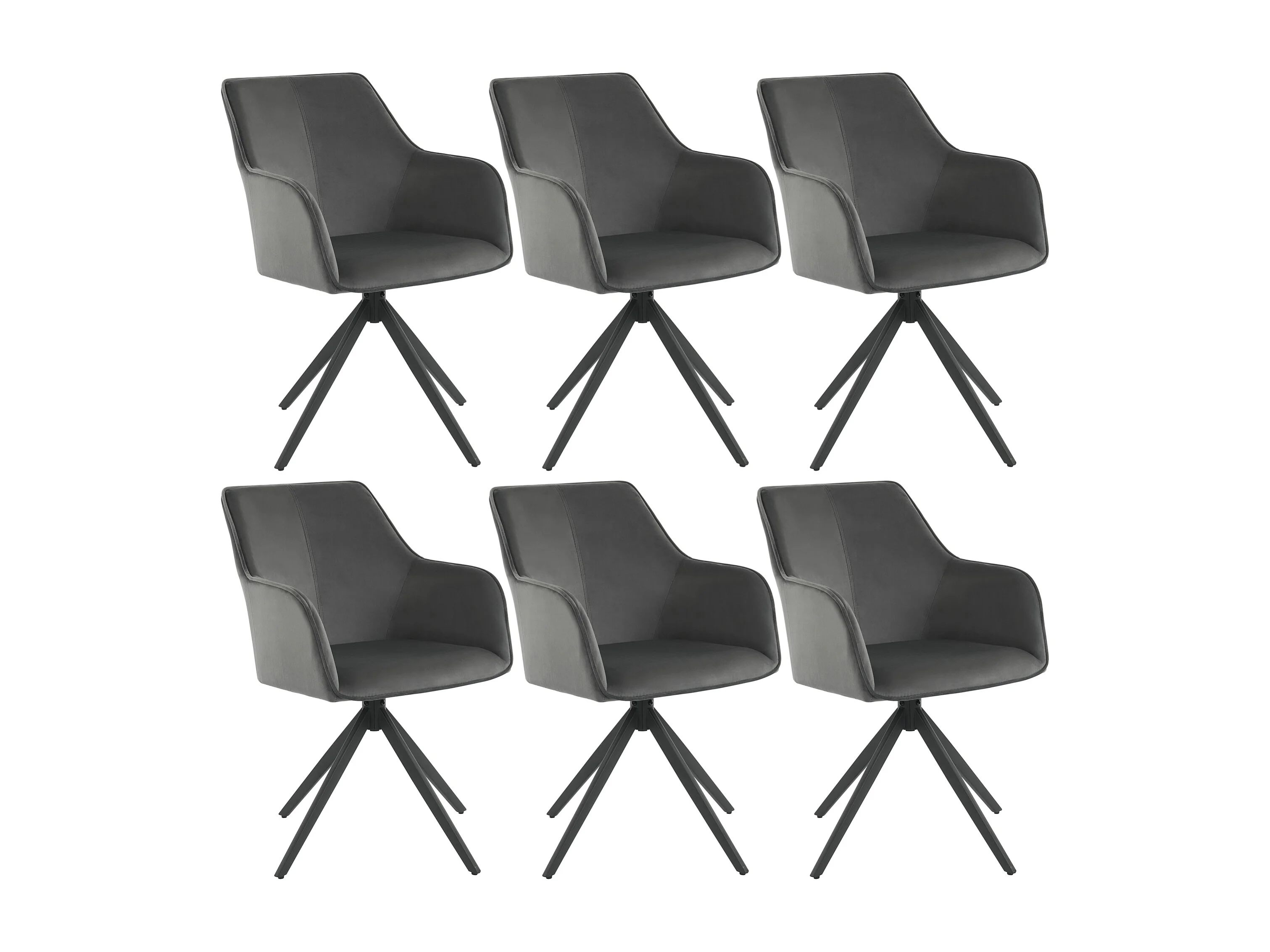 Set di 6 sedie girevoli con braccioli - Velluto e gambe in metallo - 57 x 46 x 84 cm - Grigio