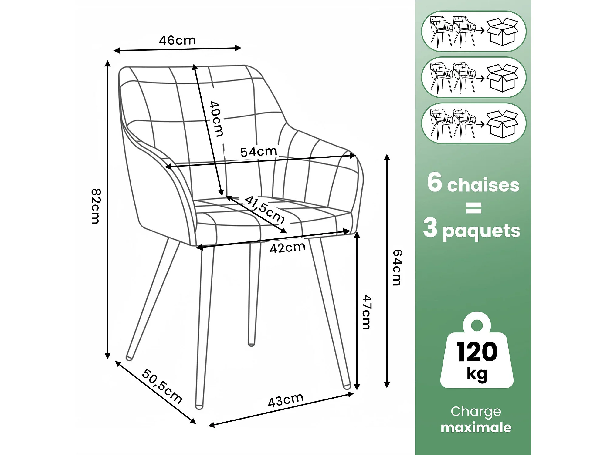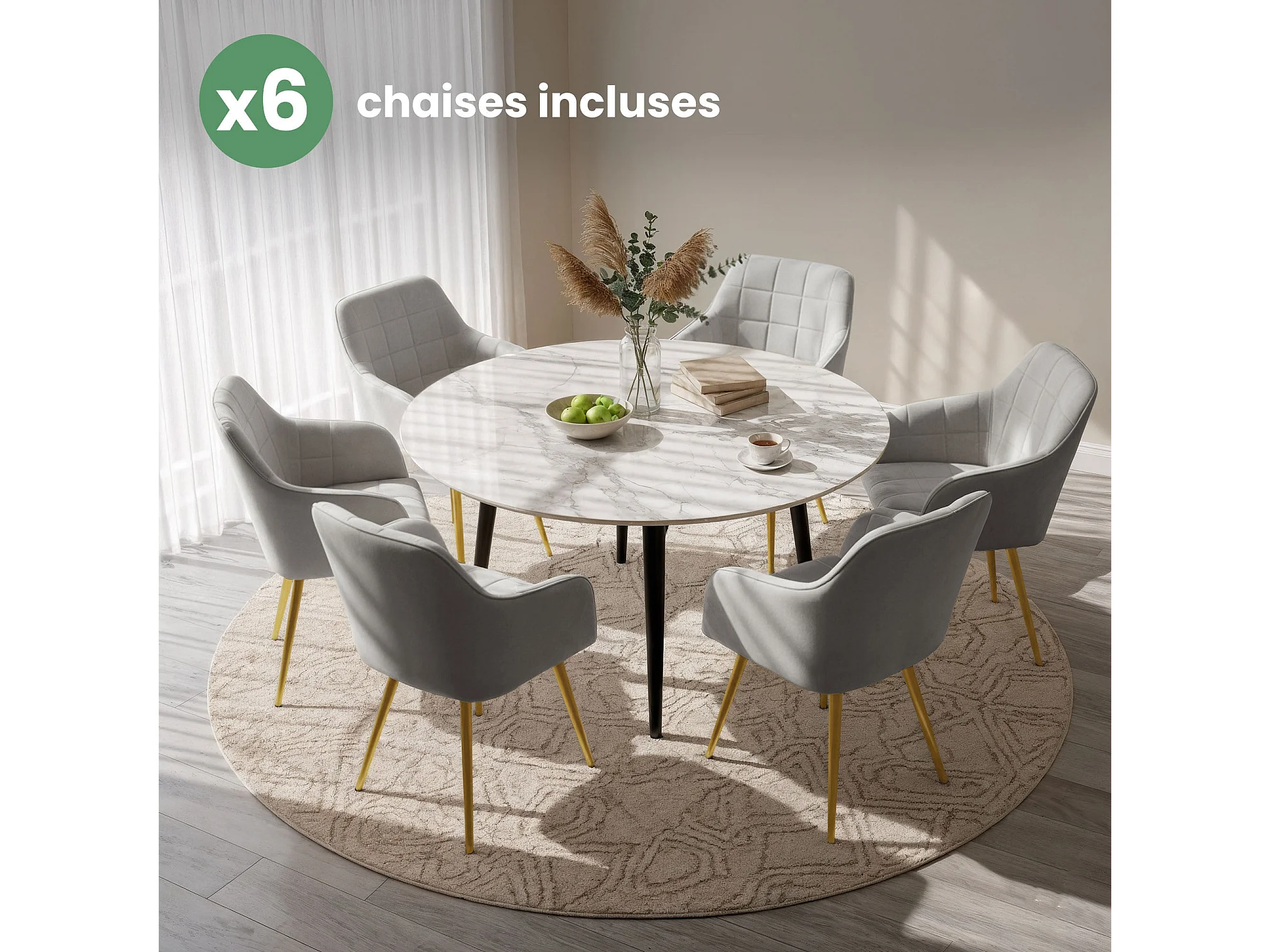 Set di 6 Sedie imbottite con cuciture quadrate LUXANO Grigio gambe oro