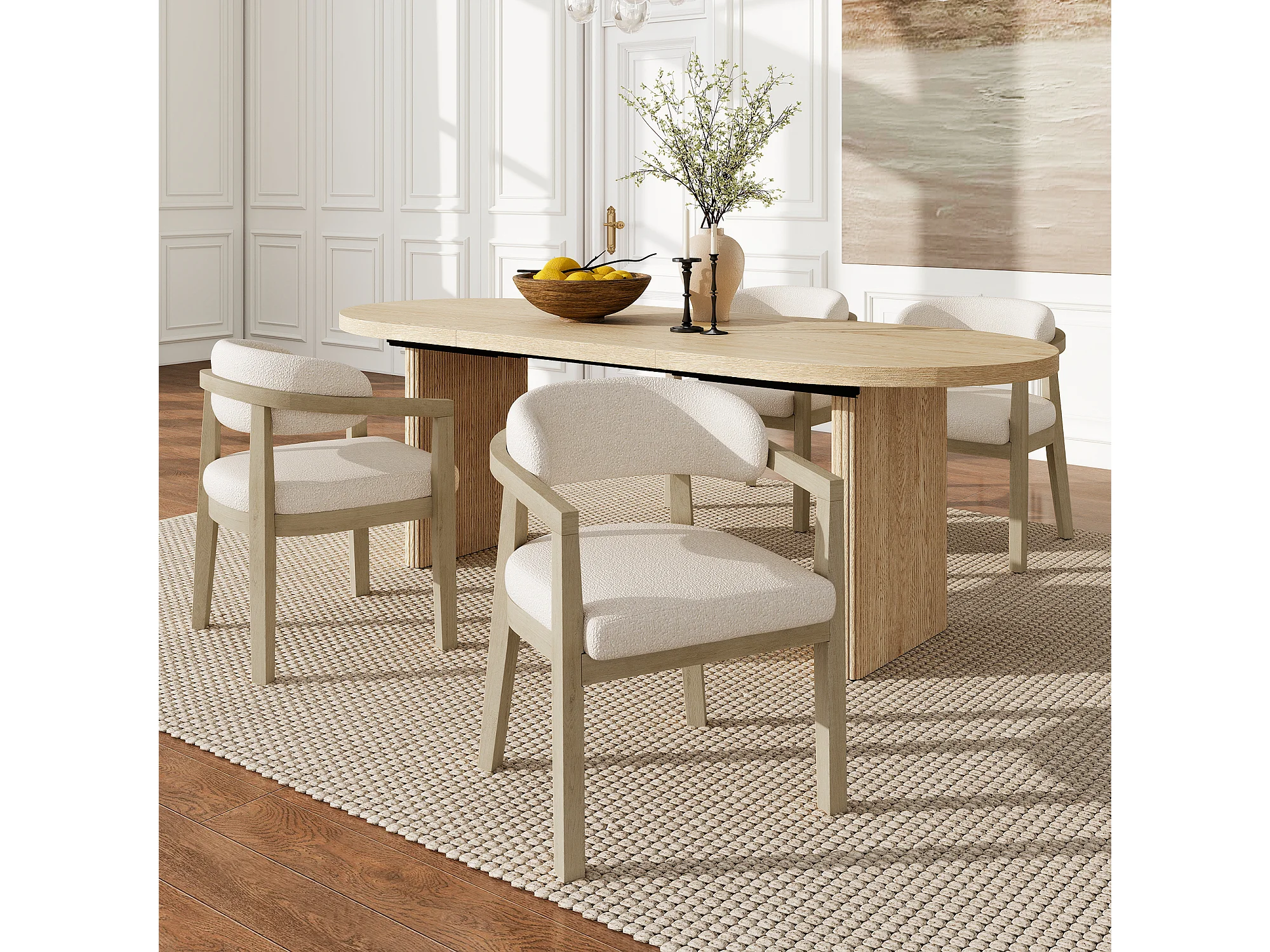 Set di 6 sedie in tessuto bouclé beige con braccioli - Legno naturale