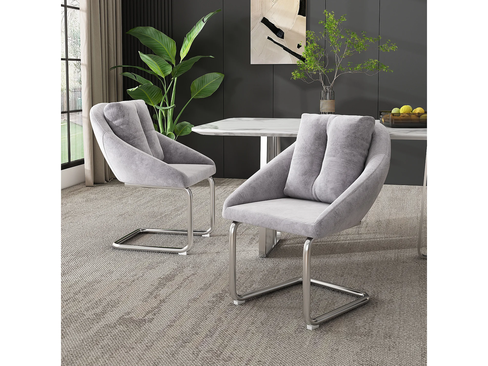 Set di 6 sedie in velluto con struttura in metallo – grigio