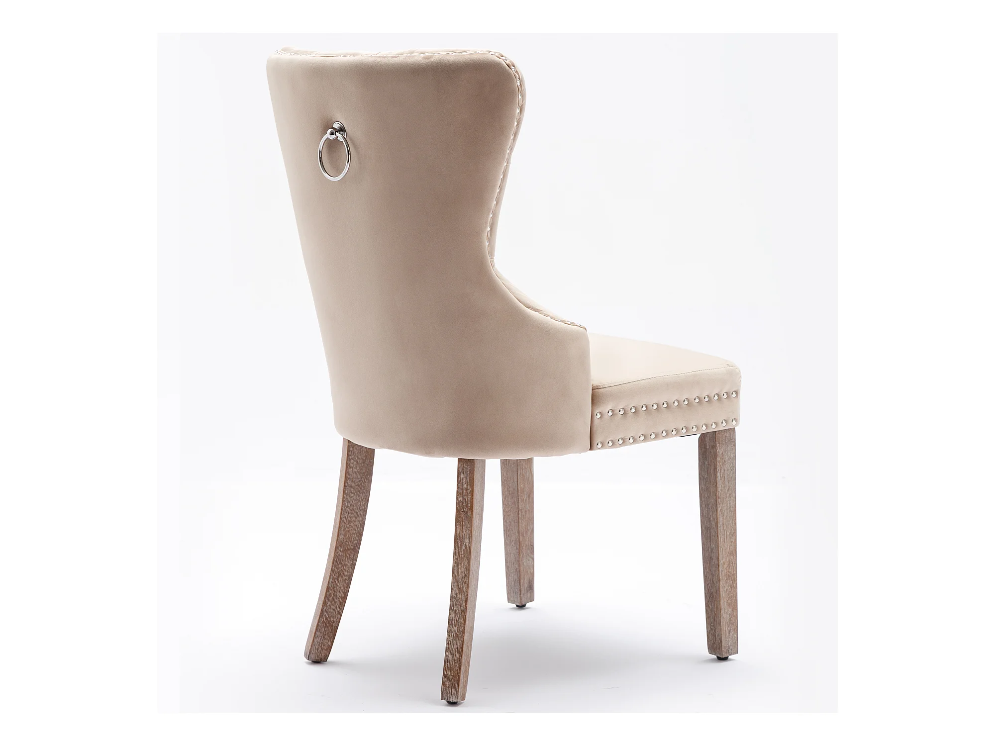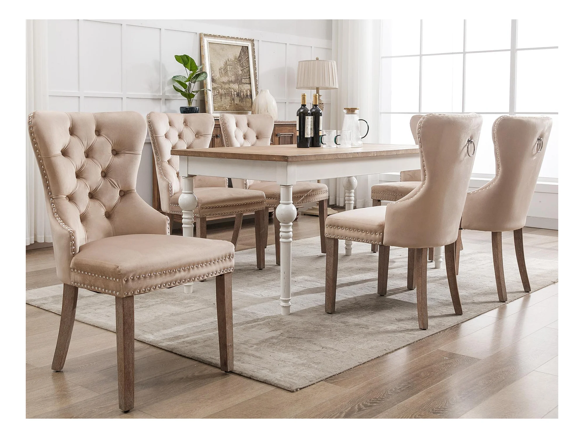 Set di 6 sedie in velluto - gambe in legno massiccio - beige