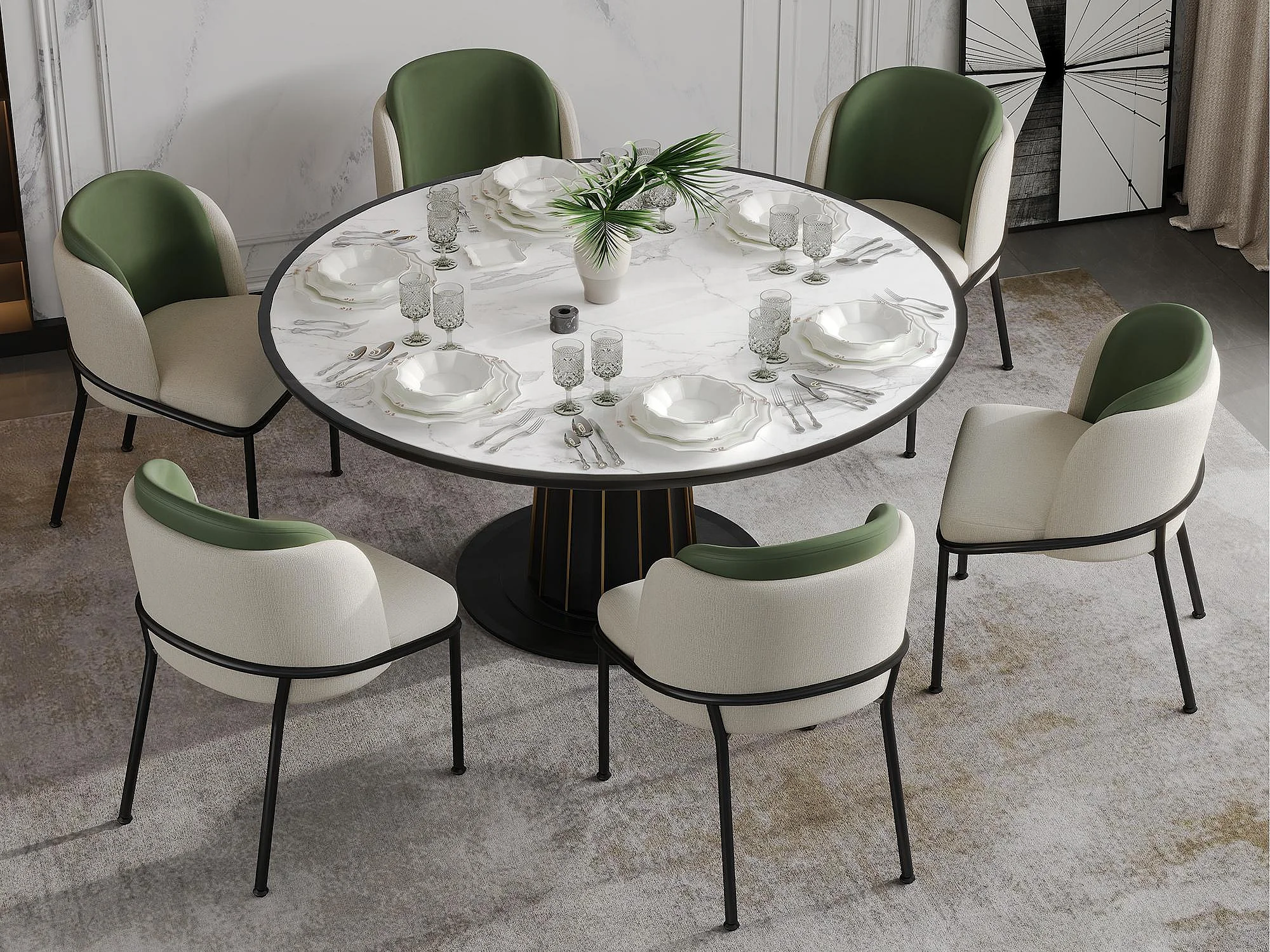 Set di 6 Sedie - Lino e similpelle - gambe in metallo - stile contemporaneo - Verde + Beige