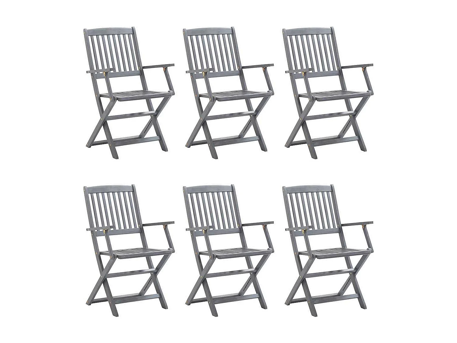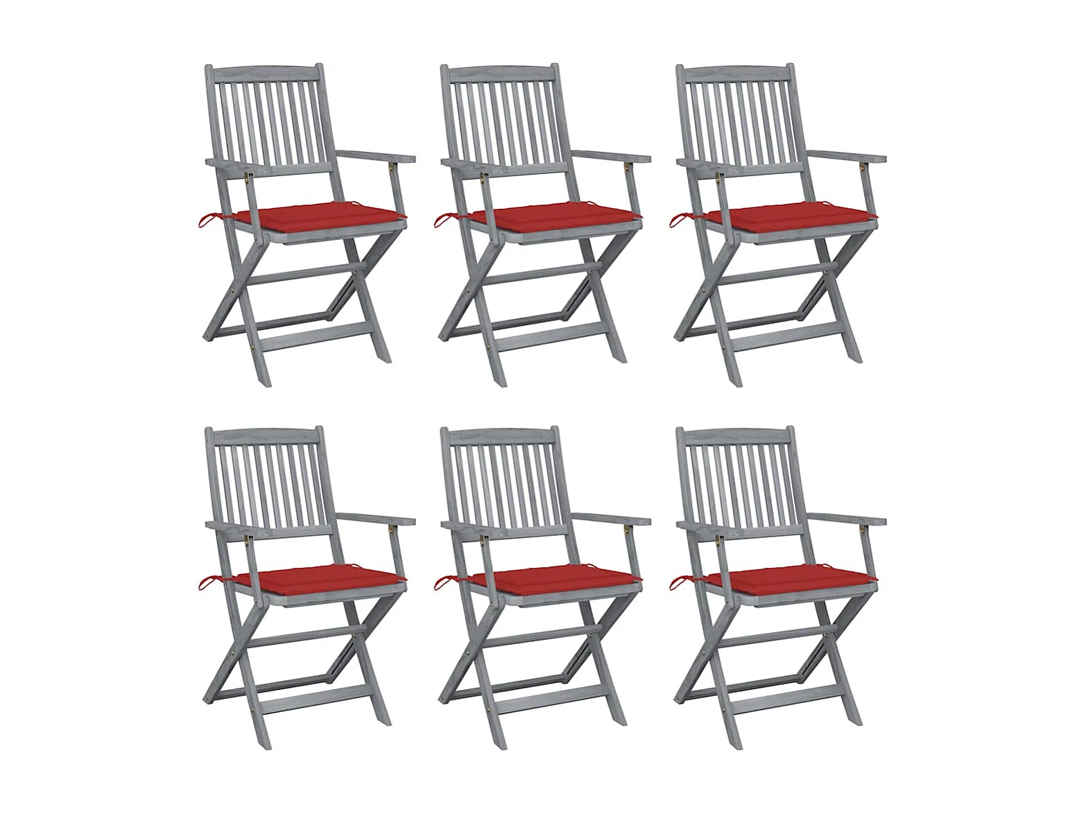 Set di 6 sedie pieghevoli da esterno e cuscini in legno di acacia