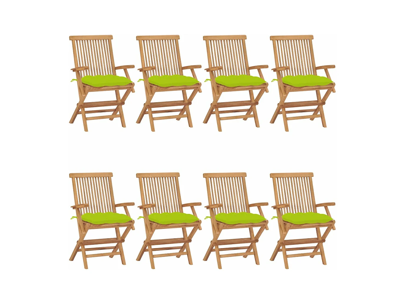 Set di 8 sedie da giardino con cuscini verde brillante in teak massiccio