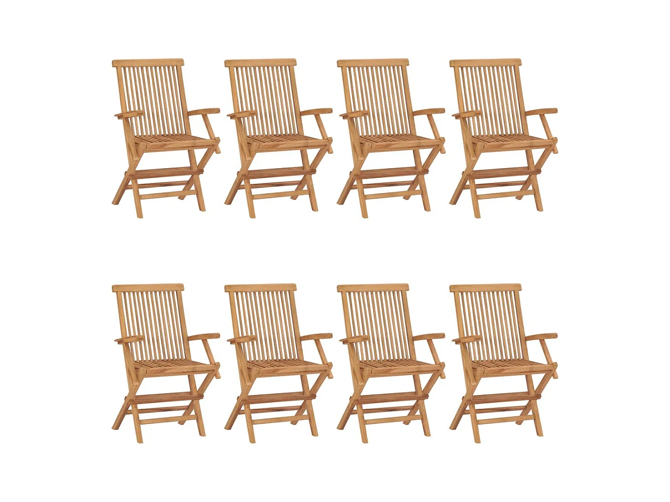 Sedie da giardino impilabili con cuscini 8 pz. Teak massiccio