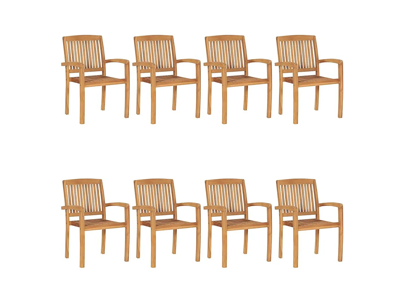 Set di 8 sedie da giardino impilabili con cuscini in teak massello