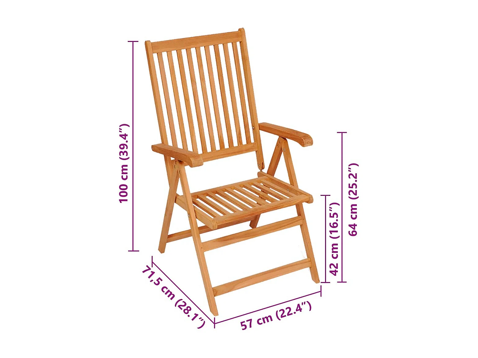 Set di 8 sedie da giardino reclinabili e cuscini in teak massiccio