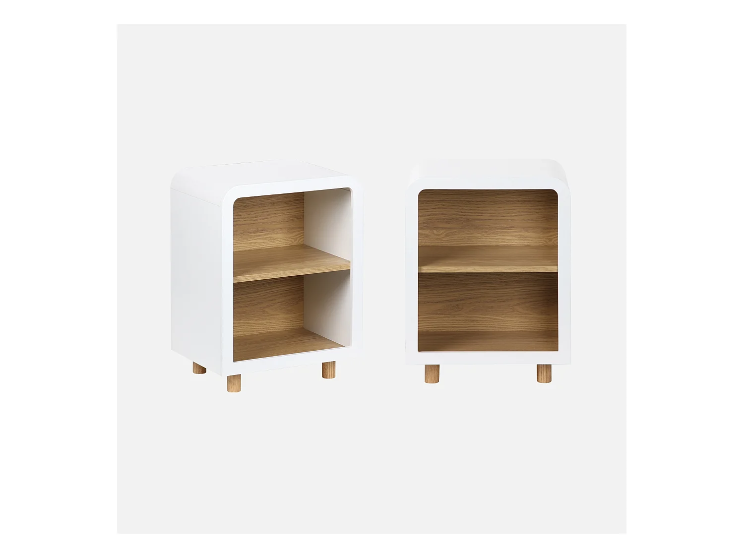Set 2 comodini effetto legno con 2 nicchie , bianco