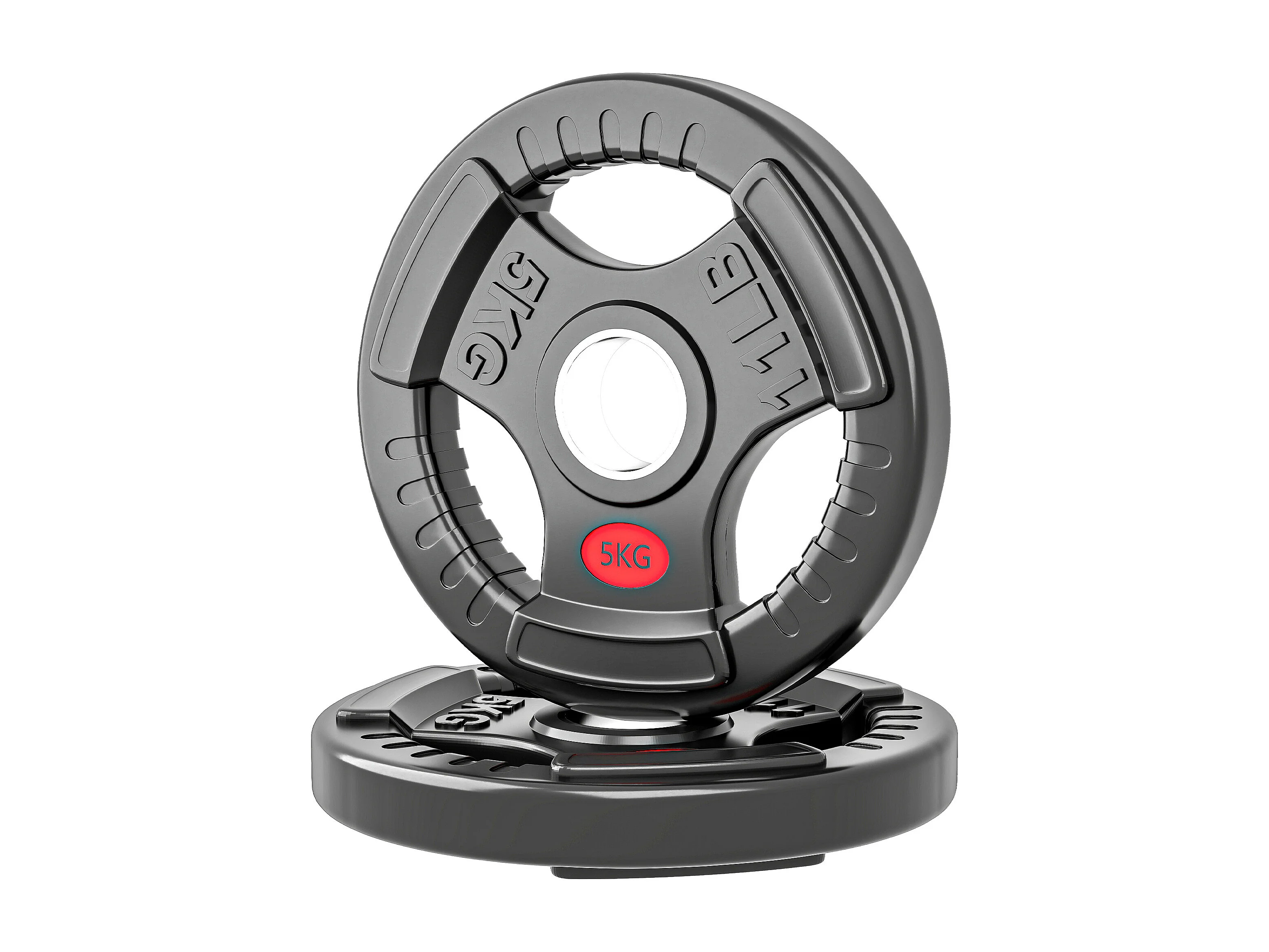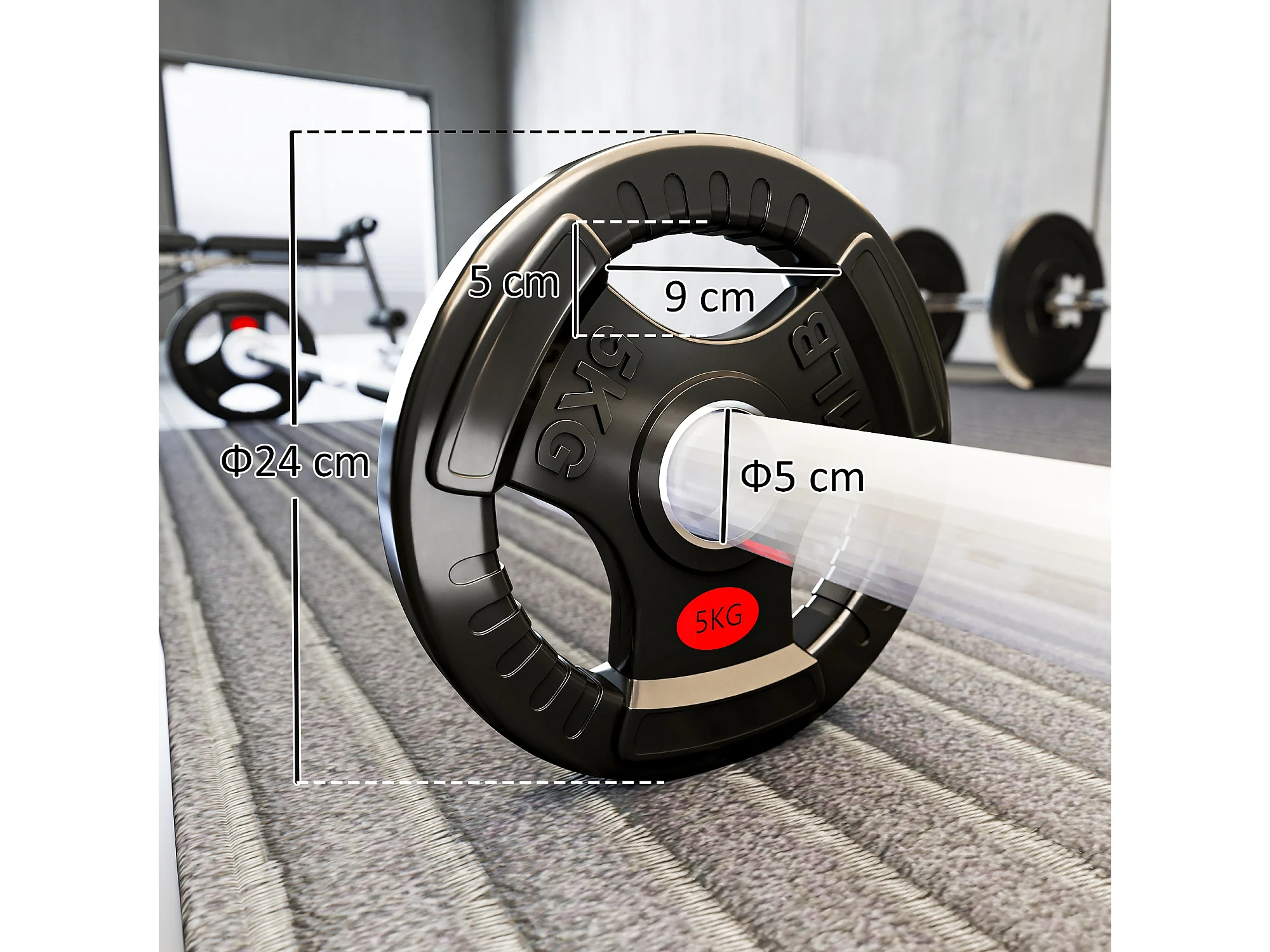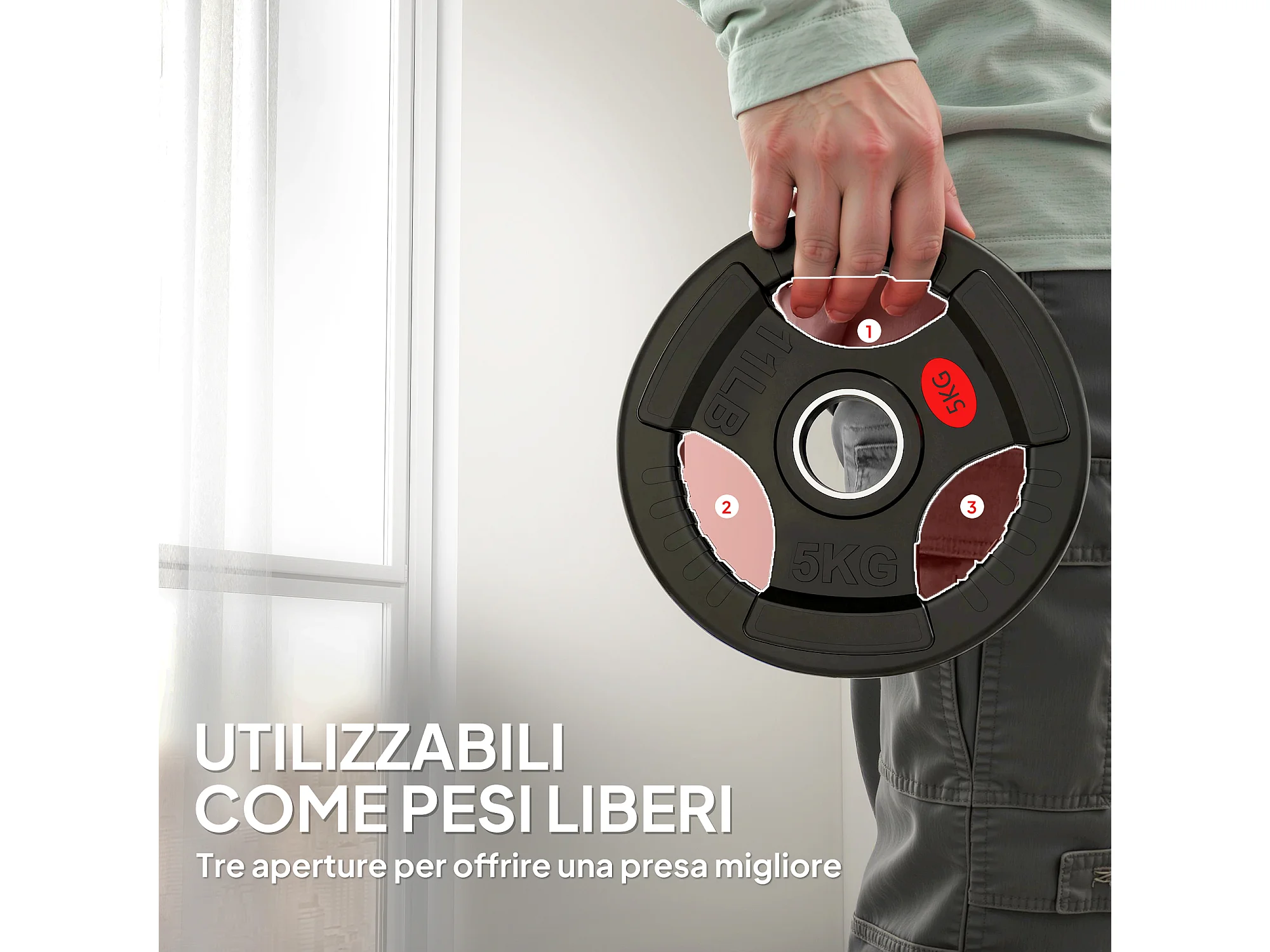 Set di dischi pesi 2x5 kg con foro da 5 cm e 3 impugnature