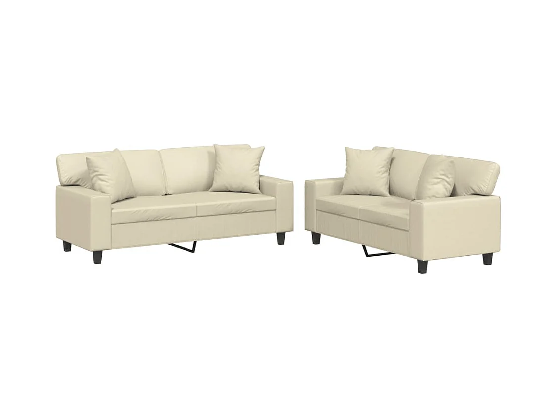 Set di Divani 2 pz con Cuscini crema in Similpelle