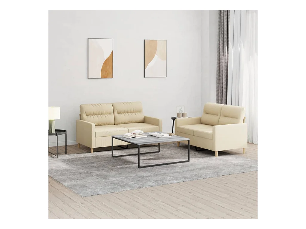 Set Divani 2 pz con Cuscini Crema in Tessuto