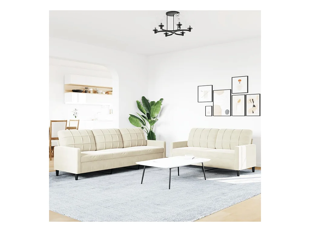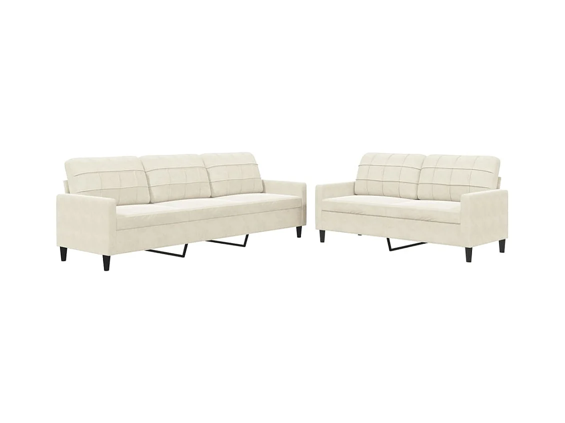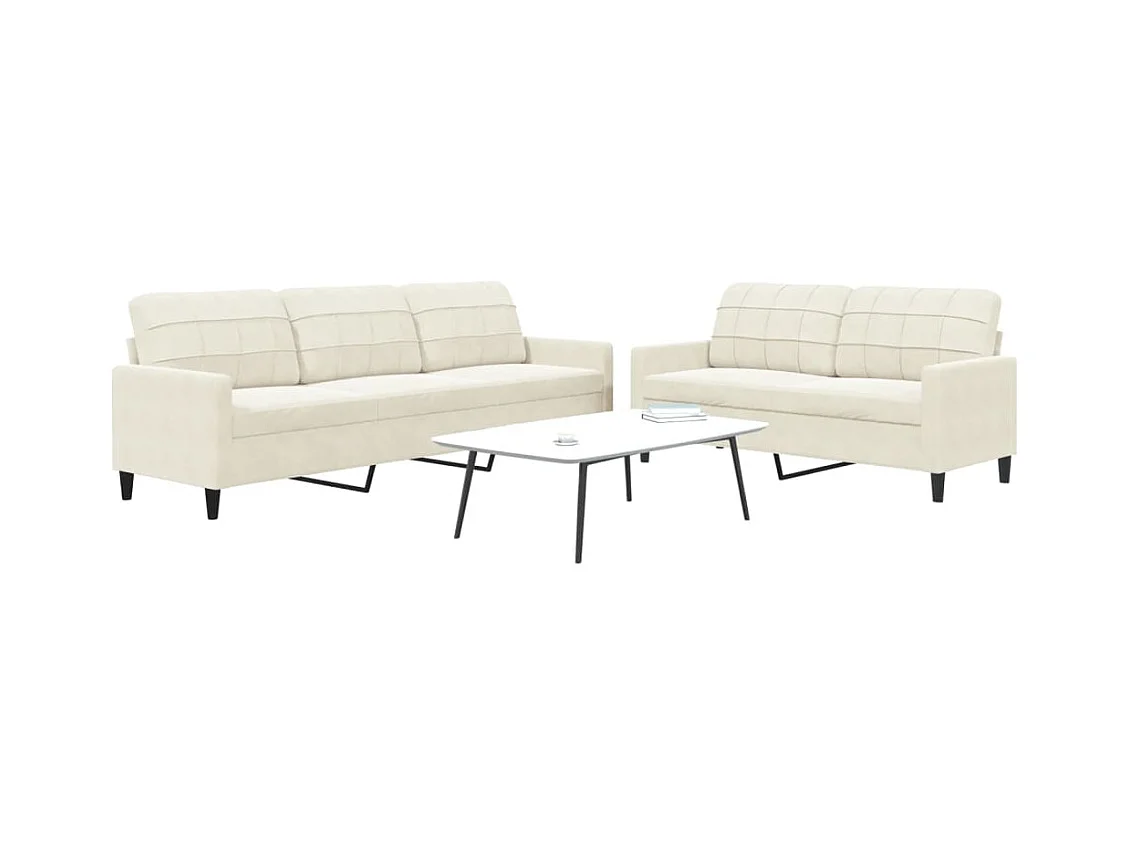 Set di Divani 2 pz con Cuscini e Rinforzi Crema in Velluto