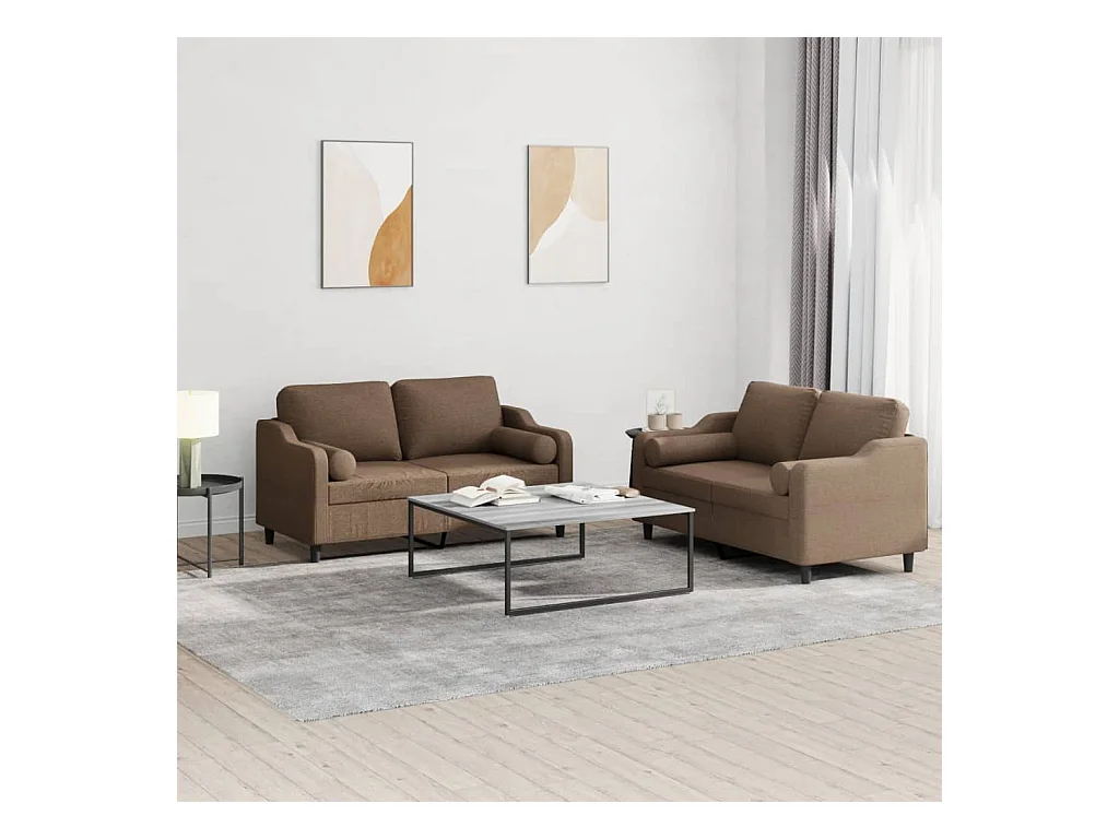 Set di Divani 2 pz con Cuscini Marrone in Tessuto