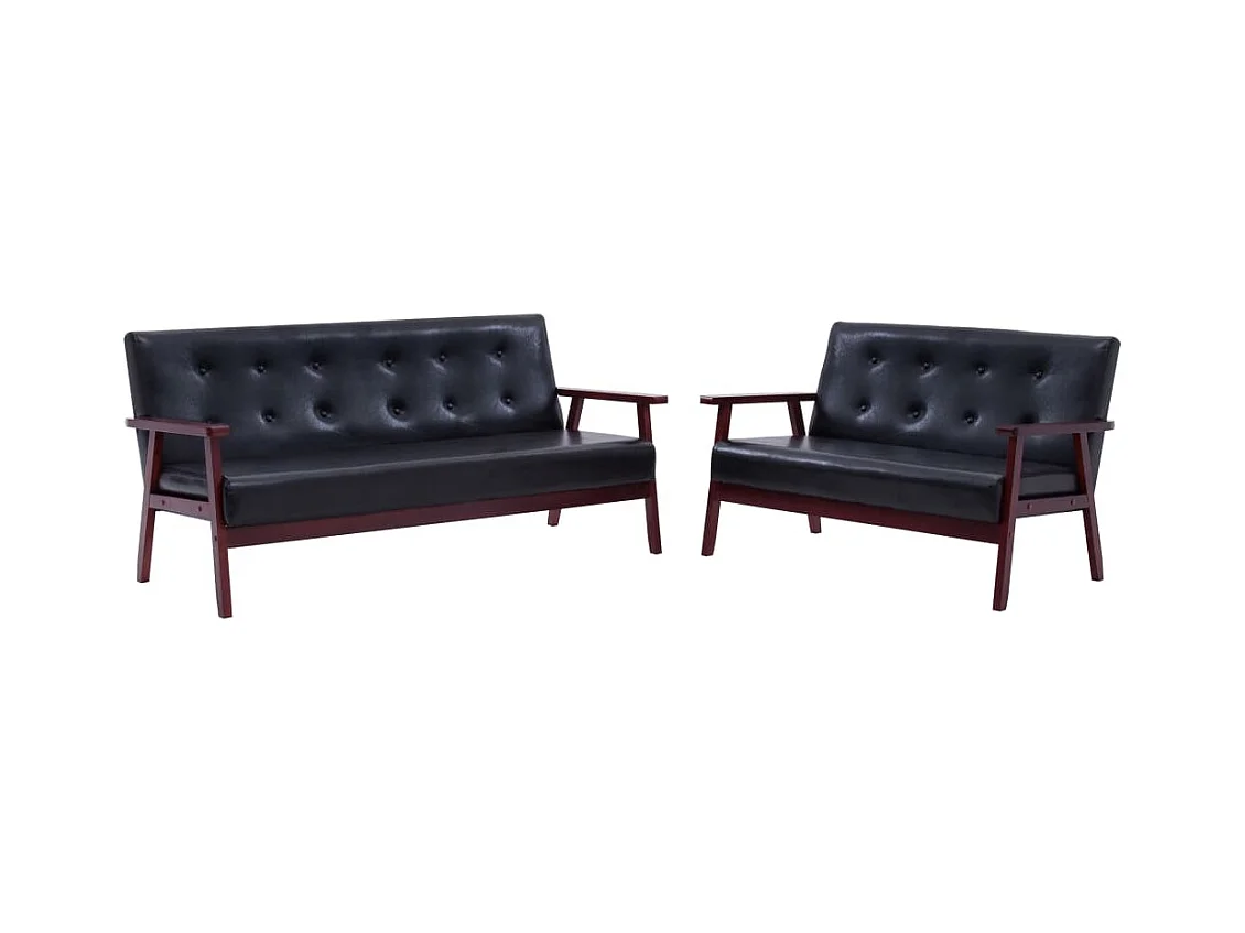 Set di Divani 3 pz con Cuscini Nero in Similpelle
