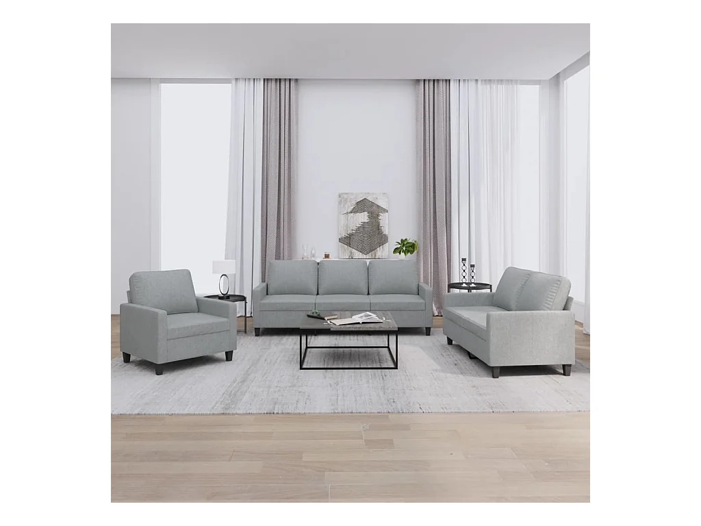 Set di divani 3 pezzi con cuscini in tessuto grigio chiaro