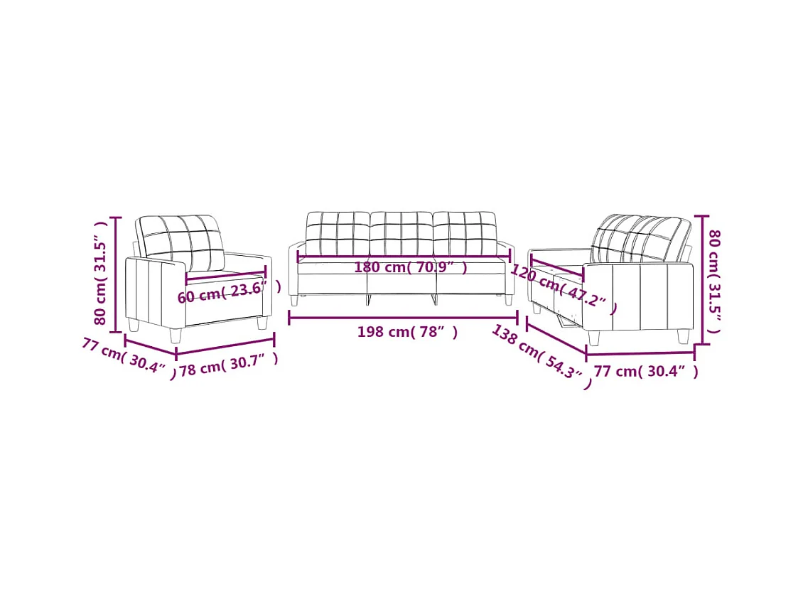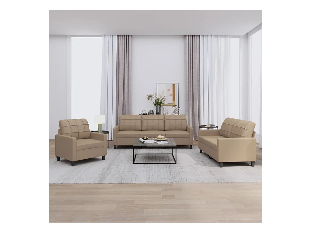 Set di Divani 3 pz con Cuscini cappuccino in Similpelle