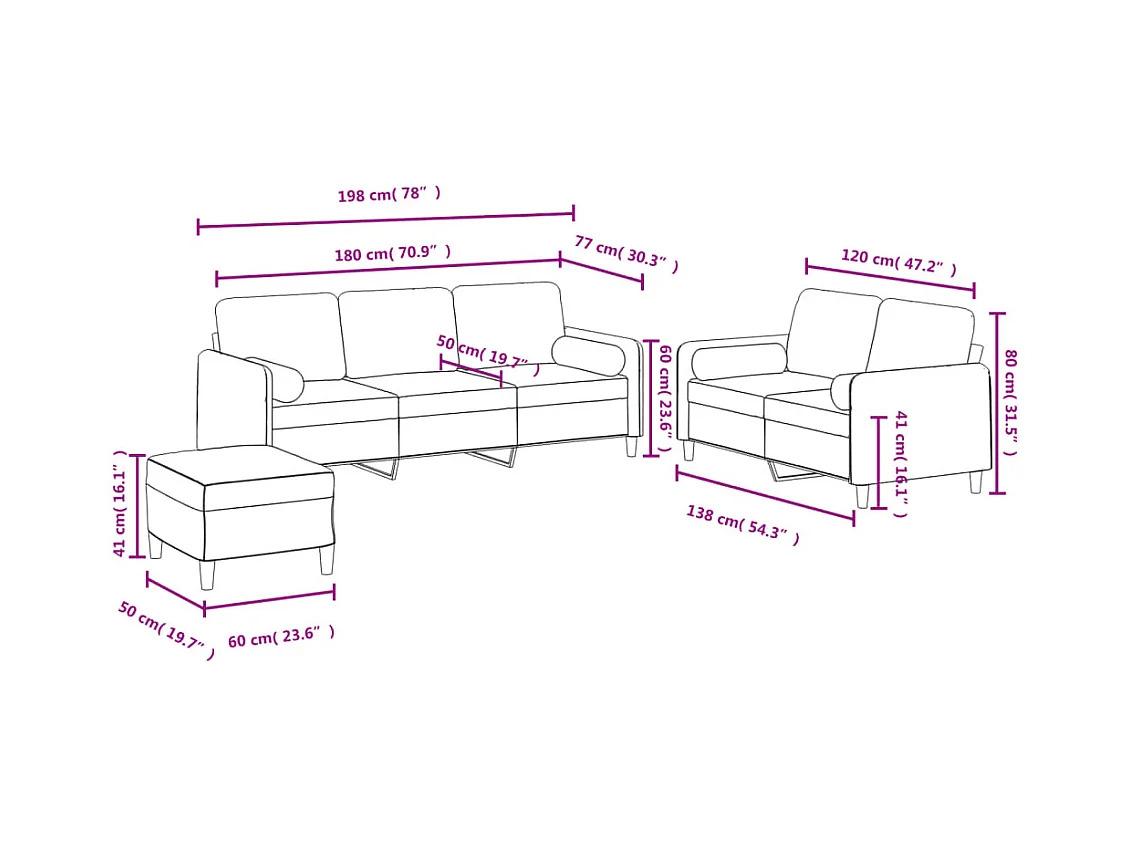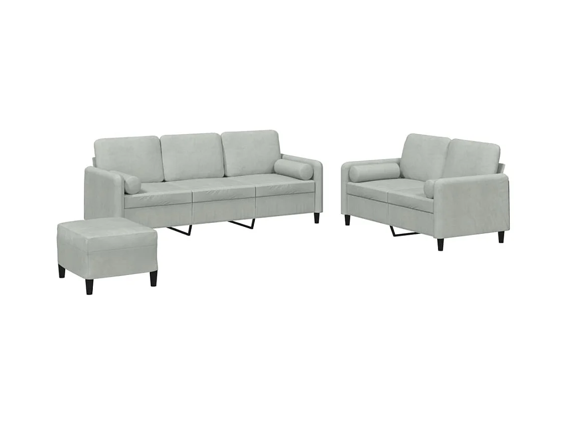 Set di Divani 3 pz con Cuscini Grigio Chiaro in Velluto