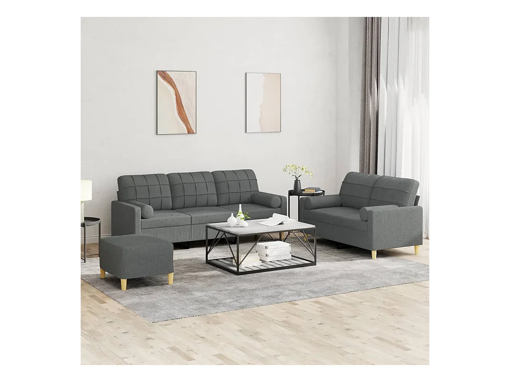 Set di Divani 3 pz con Cuscini Grigio Scuro in Tessuto