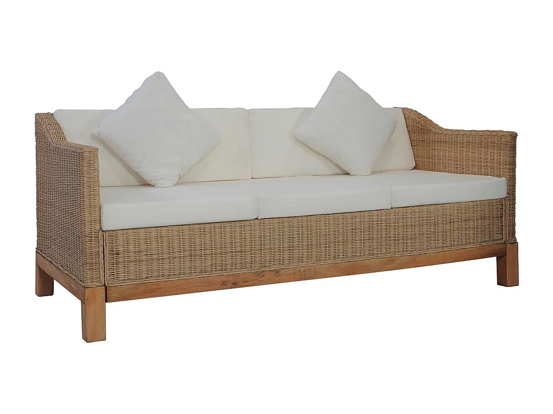 Set di Divani 3 pz con Cuscini in Rattan Naturale