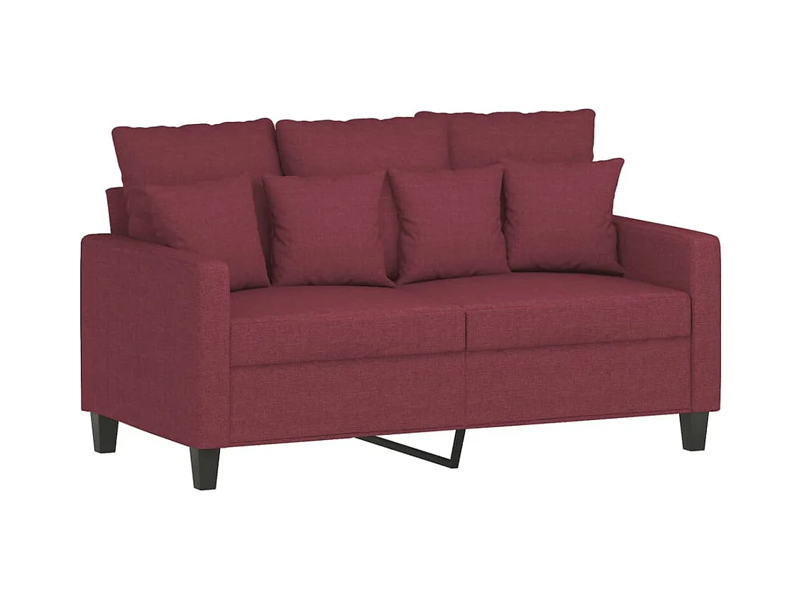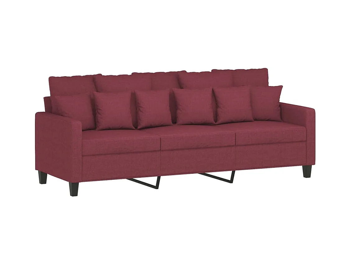 Set di Divani 3 pz con Cuscini Rosso Vino in Tessuto