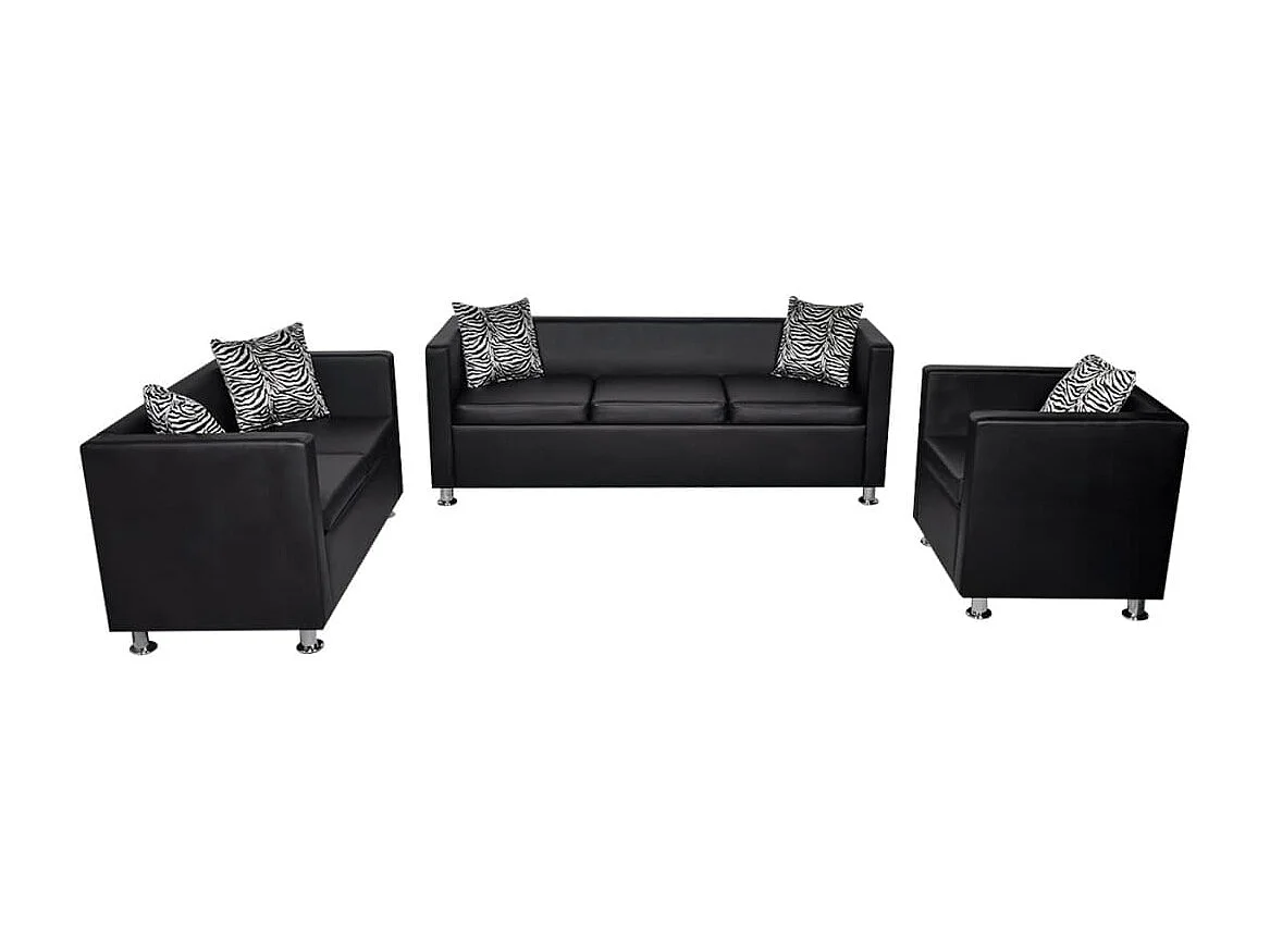 Set di divani a 2 posti per soggiorno interni di casa e divano a 3 posti e poltrona nera 02_0020253